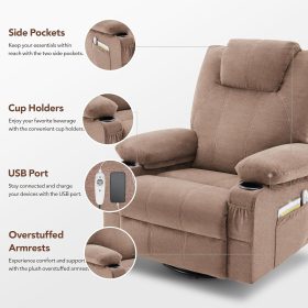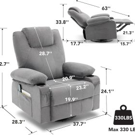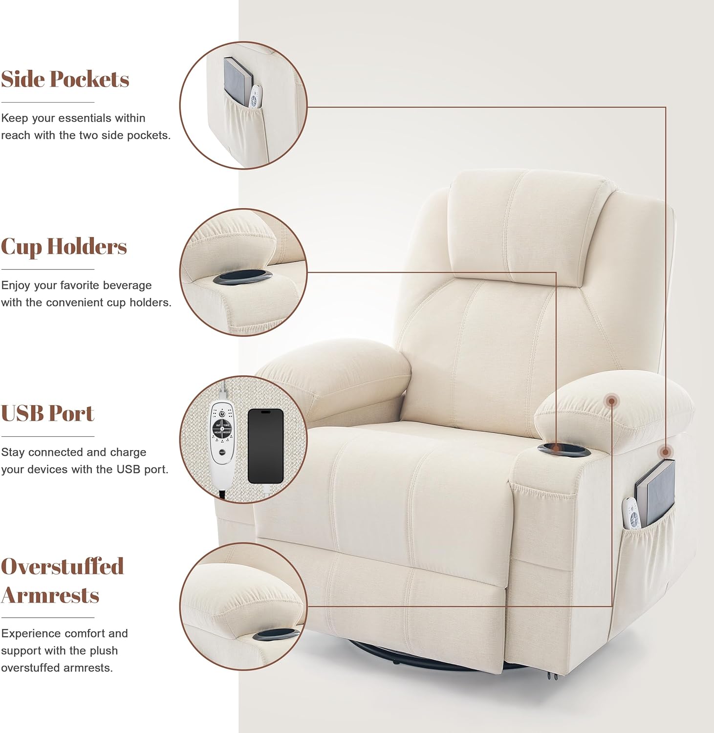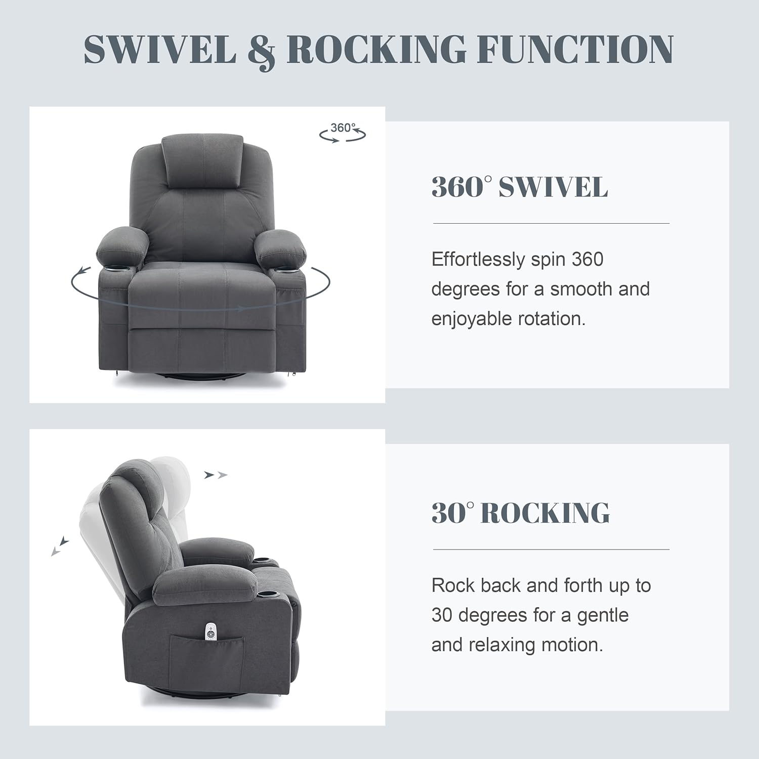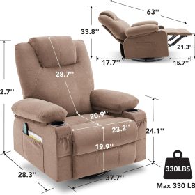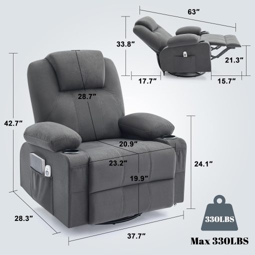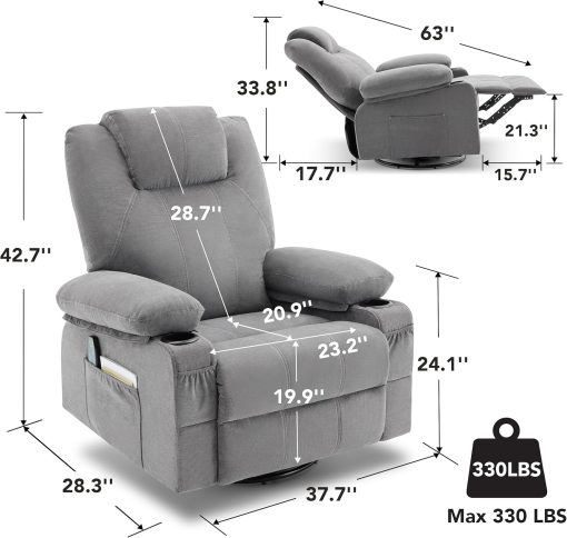 - [STURDY & EASY ASSEMBLY] Our recliner chairs for adults comes with clear instructions for easy 20-minute assembly. The swivel recliner chair is made with premium linen material, which is smooth, breathable and easy to clean. The metal frame features sturdy material, enabling a load-bearing capacity of up to 330lb, ensuring durability and safety.