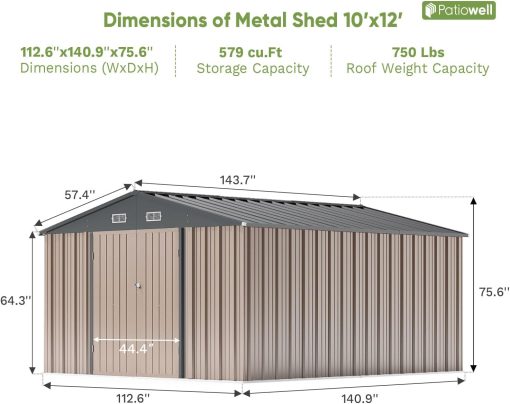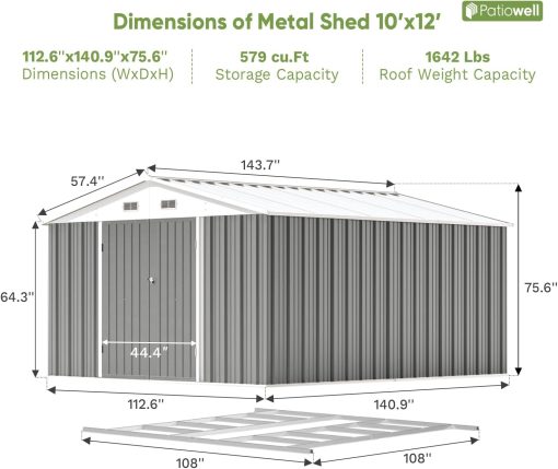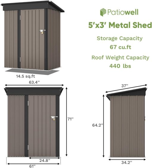 Patiowell 5′ x 3′ Metal Outdoor Storage Shed