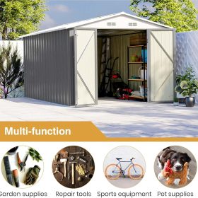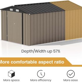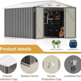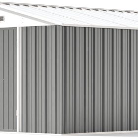 The outdoor storage shed has a sloping roof, which adds additional storage space and prevents rust caused by rainwater accumulation.