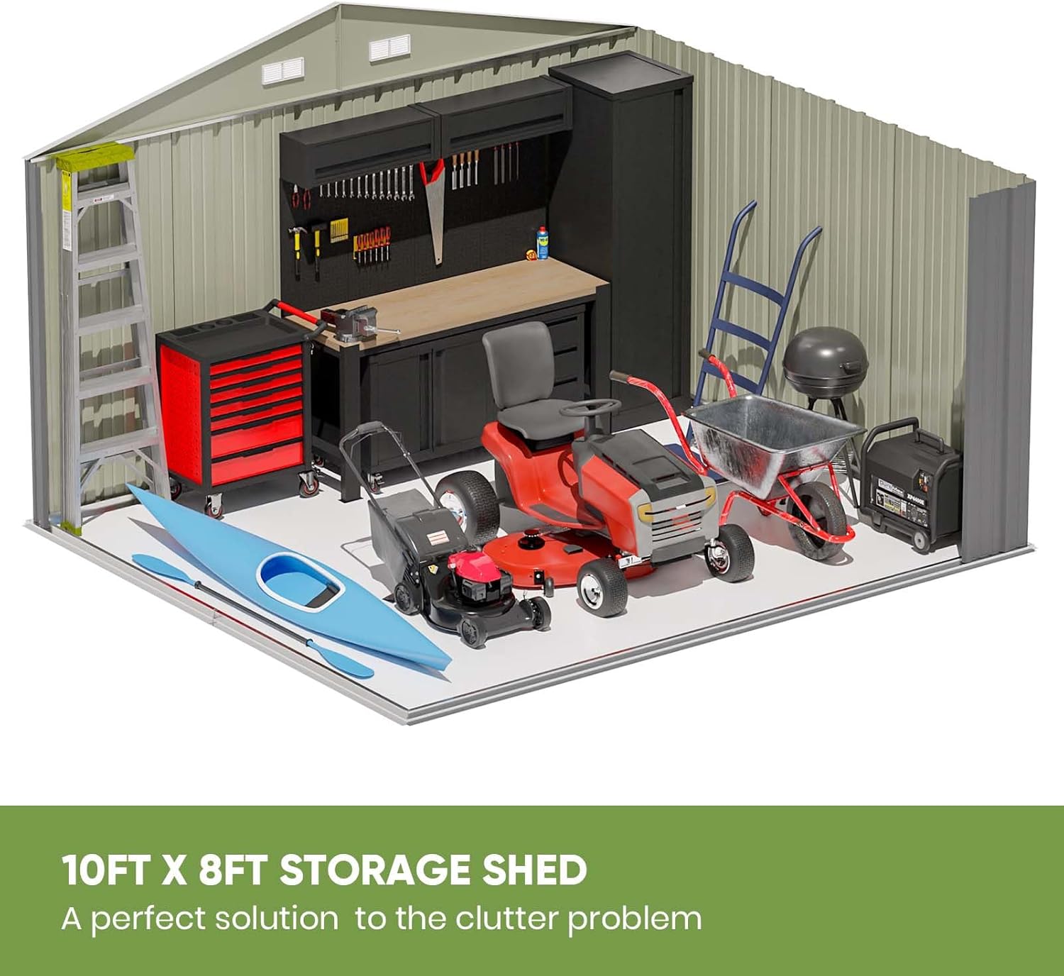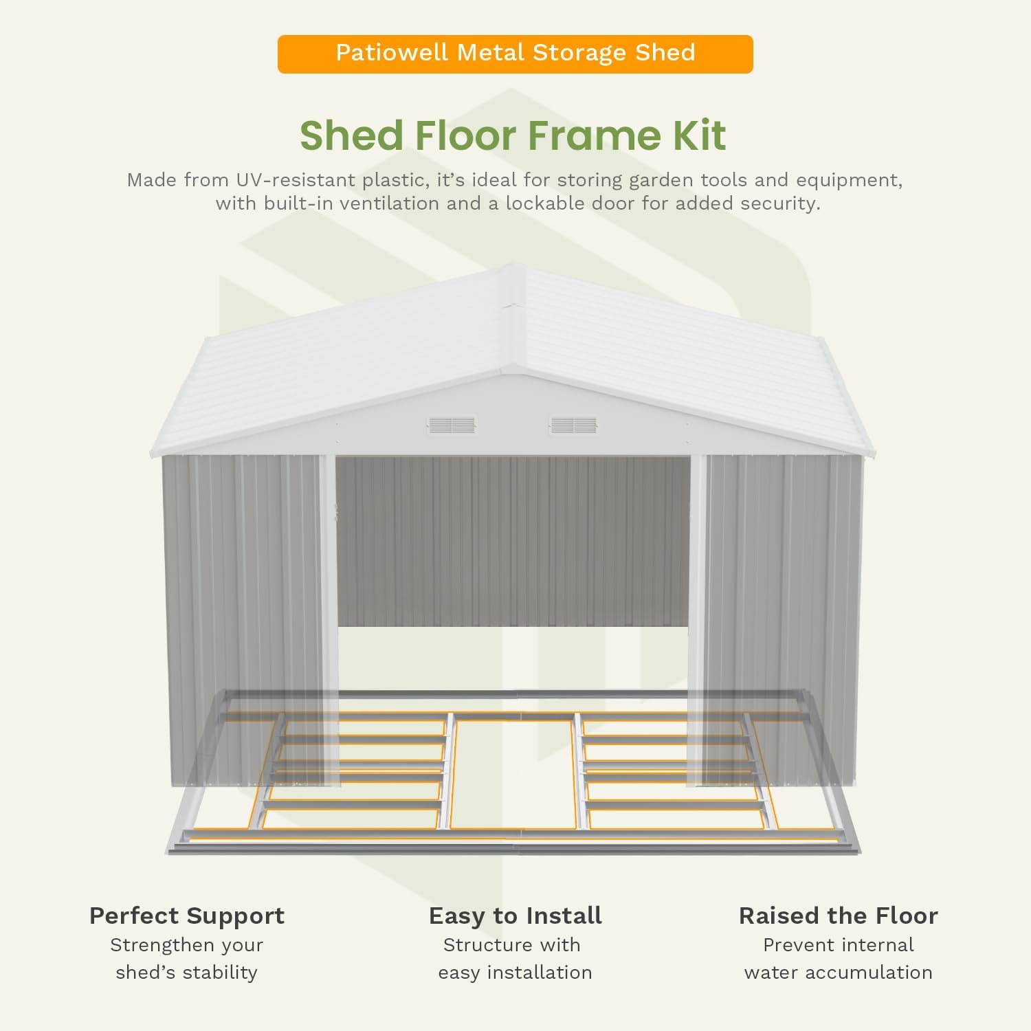 The lockable door improves security, prevents your tools from being stolen, and also prevents small animals from accidentally entering.