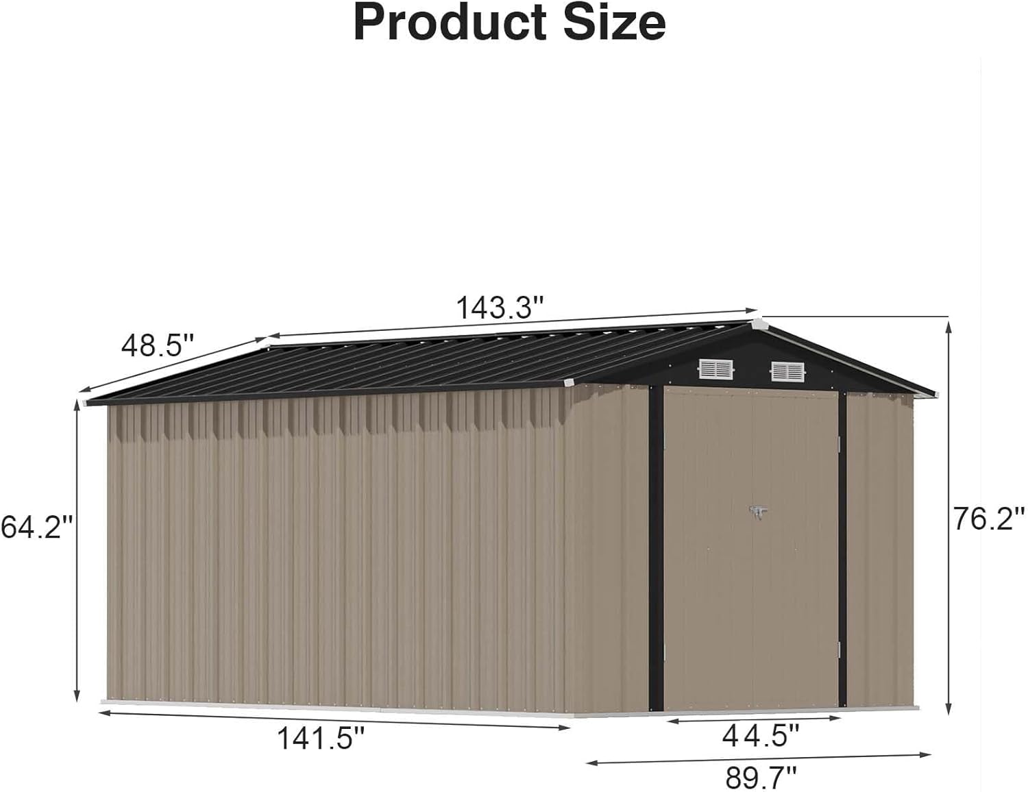 The outdoor storage shed has a sloping roof, which adds additional storage space and prevents rust caused by rainwater accumulation.