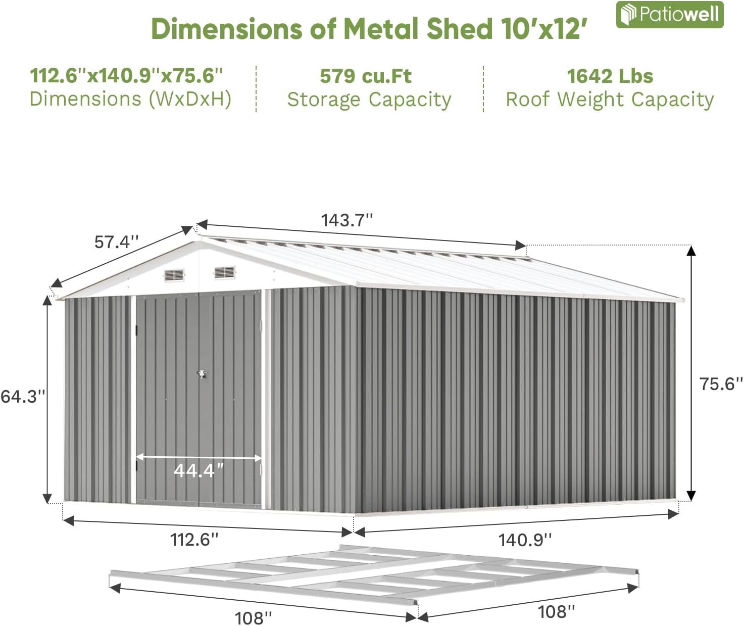 Patiowell 5′ x 3′ Metal Outdoor Storage Shed