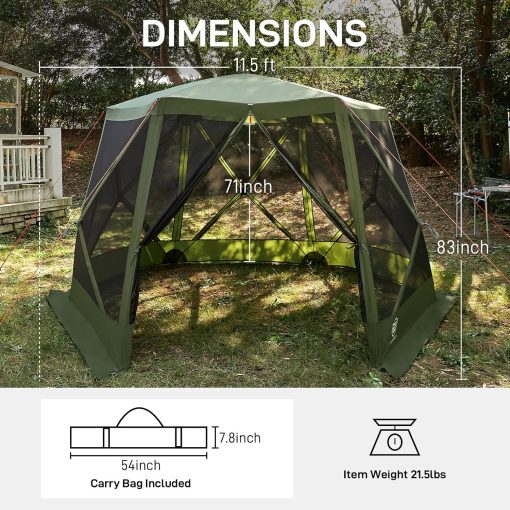 Pop up Screen House Tent for Camping 11.5 x 9.8 ft, Instant Screened Gazebo Canopy with Netting, Portable Shelter Enclosure