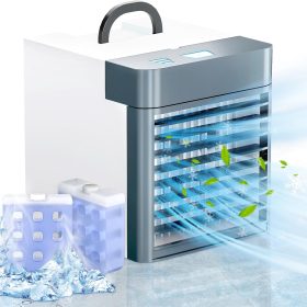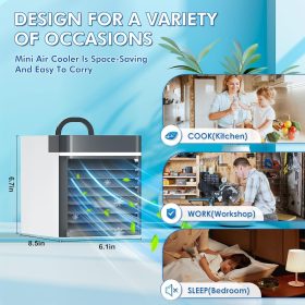 - 【PORTABLE AIR COOLER�? The ideal size of this USB mini air conditioner is 8.5 x 6.14 x 6.7 inches and weighs only 1.9 pounds. Easy to carry, perfect for offices, desks, dorms, camping, and more. The small air conditioner is easy to charge and can be used with adapters, mobile power supplies, computers, car chargers, etc.