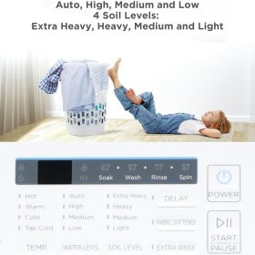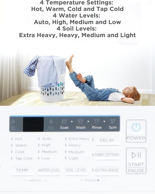 - Safety Features: Our small washing machine features auto unbalance detection to ensure laundry is cleaned at peak performance, as well as auto shutoff safety features and child lock protection.