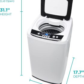 - Stainless Steel Tub: Our 0.9 cu. ft. portable laundry machine features a durable, rust and corrosion-resistant stainless steel wash tub with top loading transparent quiet-close lid to view contents.