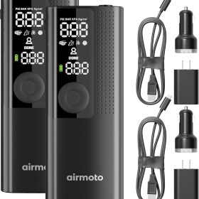 - Automatic Shutoff: Easily select the desired pressure using the ‘+’ and ‘-‘ control buttons. Simply connect the air hose to your car and press the ‘Start’ button in the center of the electric air pump. Once the correct pressure is reached, it automatically shuts off. This cordless car tire pump makes inflating all your tires hassle-free.