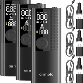 - INVEST IN PEACE OF MIND: Perfect gifts for women and gifts for men. Conveniently store this portable air compressor for car tires in your glove box or garage, ready for use whenever needed. The package comprises 1* Car Tire Inflator, 1* Air Hose with Schrader attached, 1x General Nozzle Cone, 1* Needle Adapter, 1* Presta Adapter, 1* USB-C Charging Cable, 1* Carrying Case and 1* User Manual. For any questions or concerns, please feel free to contact us.