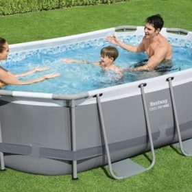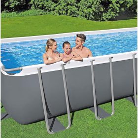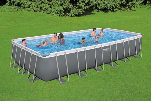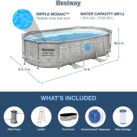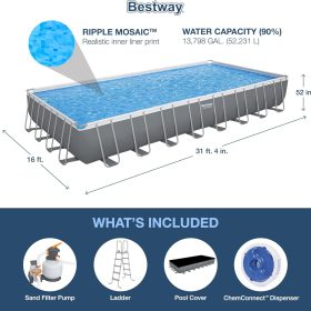 - SUPERIOR CONSTRUCTION: Corrosion resistant steel frame is held together with our Seal and Lock System to provide remarkable strength and connection. The pool’s size is 14 ft. x 8 ft. 2 in. x 39.5 in. (4.27 m x 2.50 m x 1.00 m) and holds 1915 galllons of water at 90% capacity.