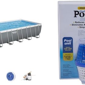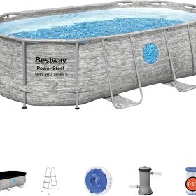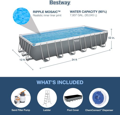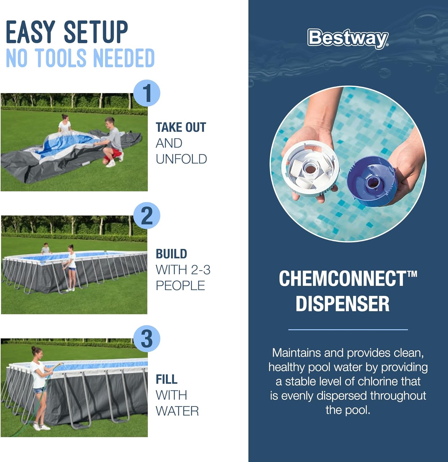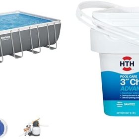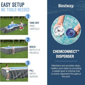 - EVERYTHING YOU NEED: This above ground pool set also comes with a filter pump, a ladder and a ChemConnect chemical dispenser. The ChemConnect dispenser maintains clean, healthy pool water by providing a stable level of chlorine that is evenly dispersed throughout the pool.