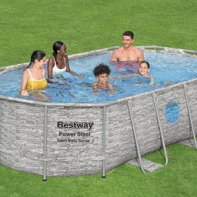 - UNIQUE OVAL SHAPE: The unique oval design and shape makes this pool more compact, so it requires less area for set up and less water to fill it up.