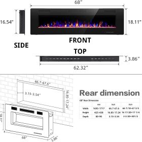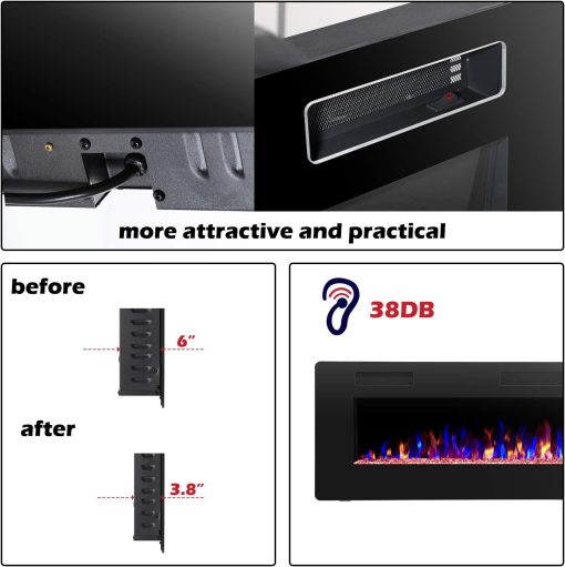- Attractive and Practical Design: 3.86’D x 60’W x 18.11’H,The thickness of the new style is only 3.86 inches while the old one is 6 inches. And it operates the same as the old one. Also we redesign the location of main power and power cable, which makes the new fireplace more attractive and practical.