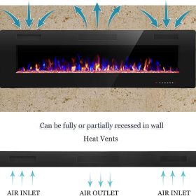 - Multi Operation Modes: Touch screen and remote control;12 flame & LED flame bed color modes;5 flame speed modes;5 flame brightness levels; Specially automatic flame design(the flame color and brightness changed