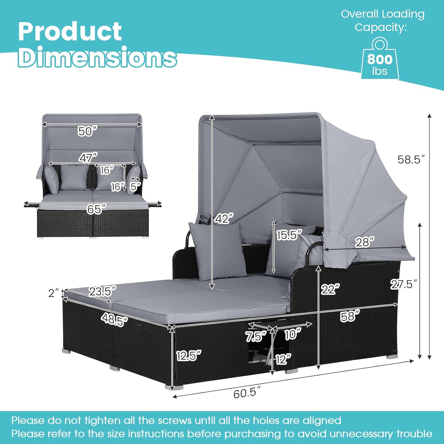 | Included Components | 1 x Patio Daybed, 4 x Back Pillows, 2 x Seat Cushions, 1 x Instruction |