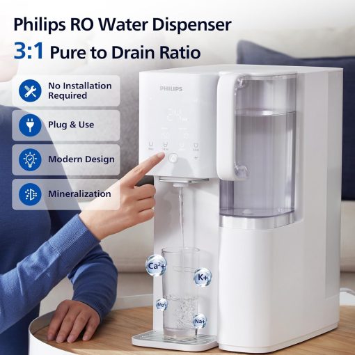 - 𝐏𝐥𝐮𝐠 𝐚𝐧𝐝 𝐏𝐥𝐚𝐲: Enjoy instant filtration with a simple press of a button, making it convenient and easy to access clean water. Just plug and play, no plumbing installation required.This water dispenser consistently dispenses a standard volume of 16.9 oz with each press, ensuring you can enjoy pure and fresh-tasting water instantly