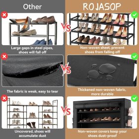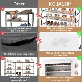 1. This upgraded shoe storage rack comes with a non-woven covers to protect your shoes from dust and dirt, and there are 4 pockets on the side of the covers, which is convenient for you to store some small items and increase storage space.