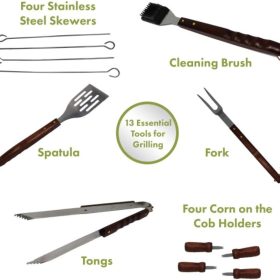 - Ample Storage Space: The mesh bottom shelf holds up to 20 lb. accessories when they are evenly distributed. Three integrated extensions are used for hanging grilling tools and utensils
