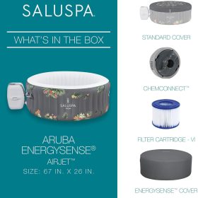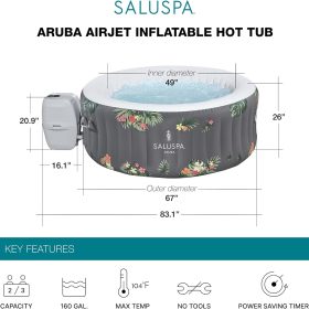 - Round Aruba hot tub provides a soothing massage experience with 110 bubbling warm jets for up to 2 to 3 people and reaches up to 104 degrees F for ultimate relaxation