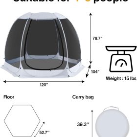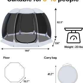 Screen gazebo, sleeps 6-10-15 people Igloo-style canopy tent with mosquito net on the sides Perfect for garden, patio, backyard