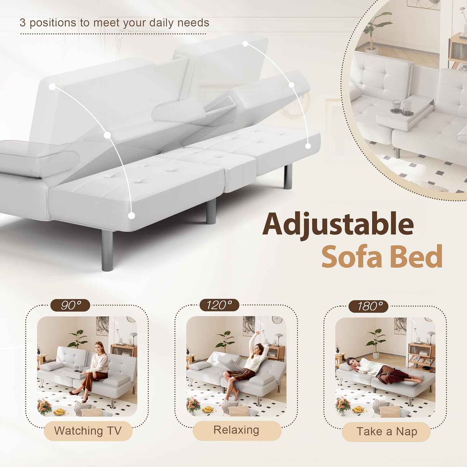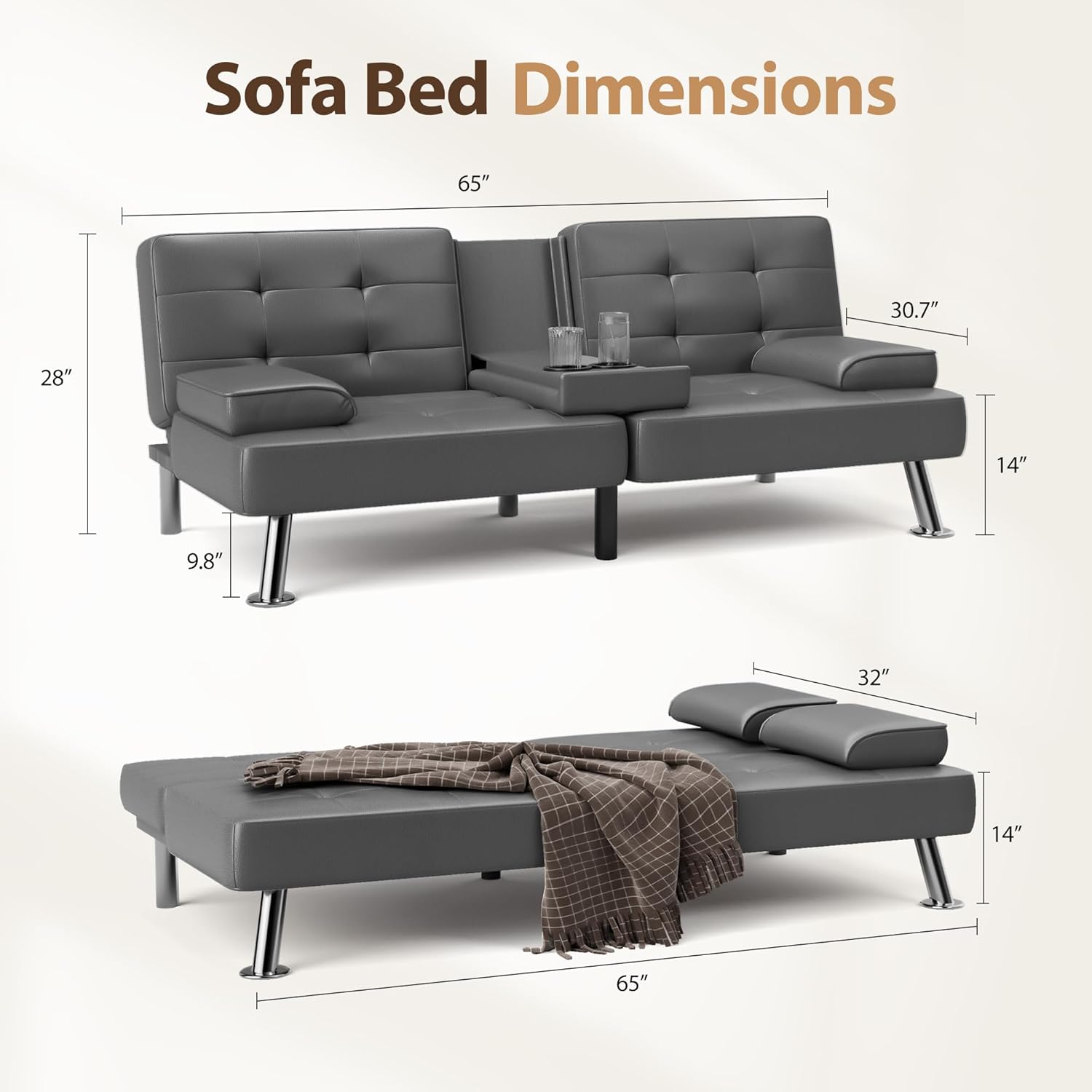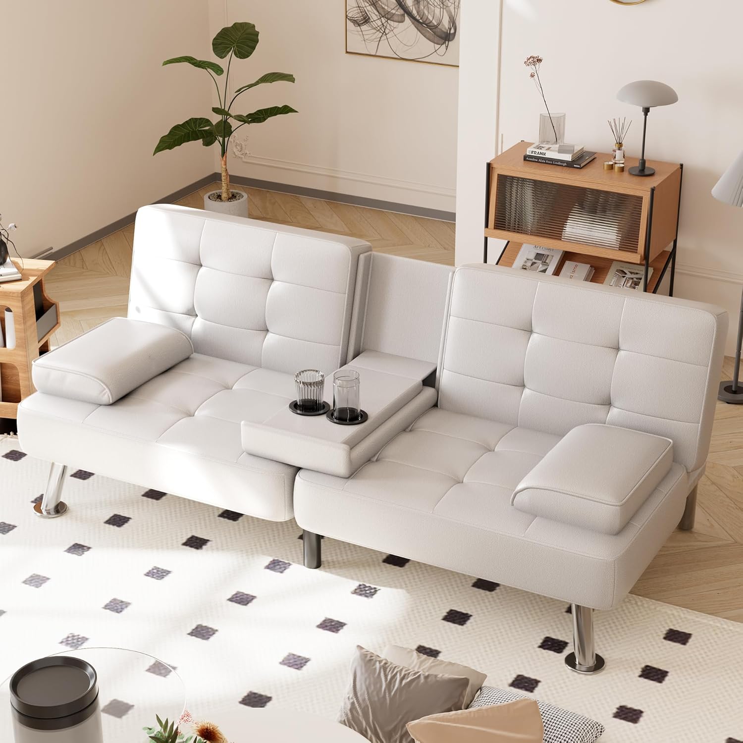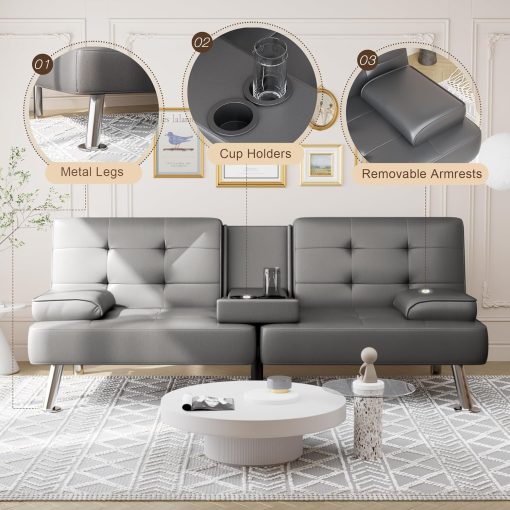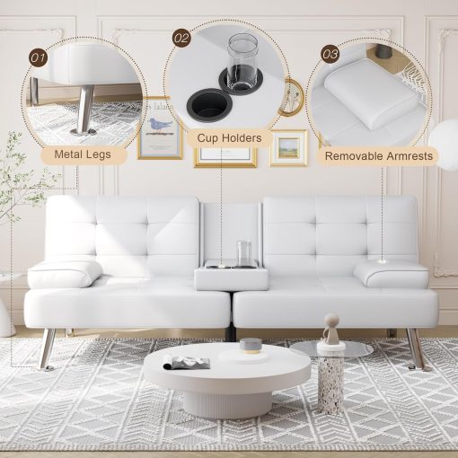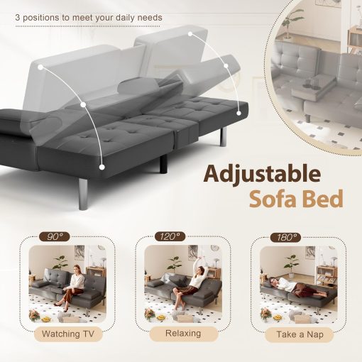Shahoo Convertible Folding Futon Sofa Bed Sleeper Couch for Living Room Faux Leather