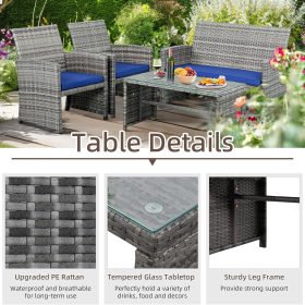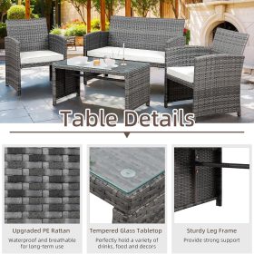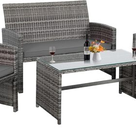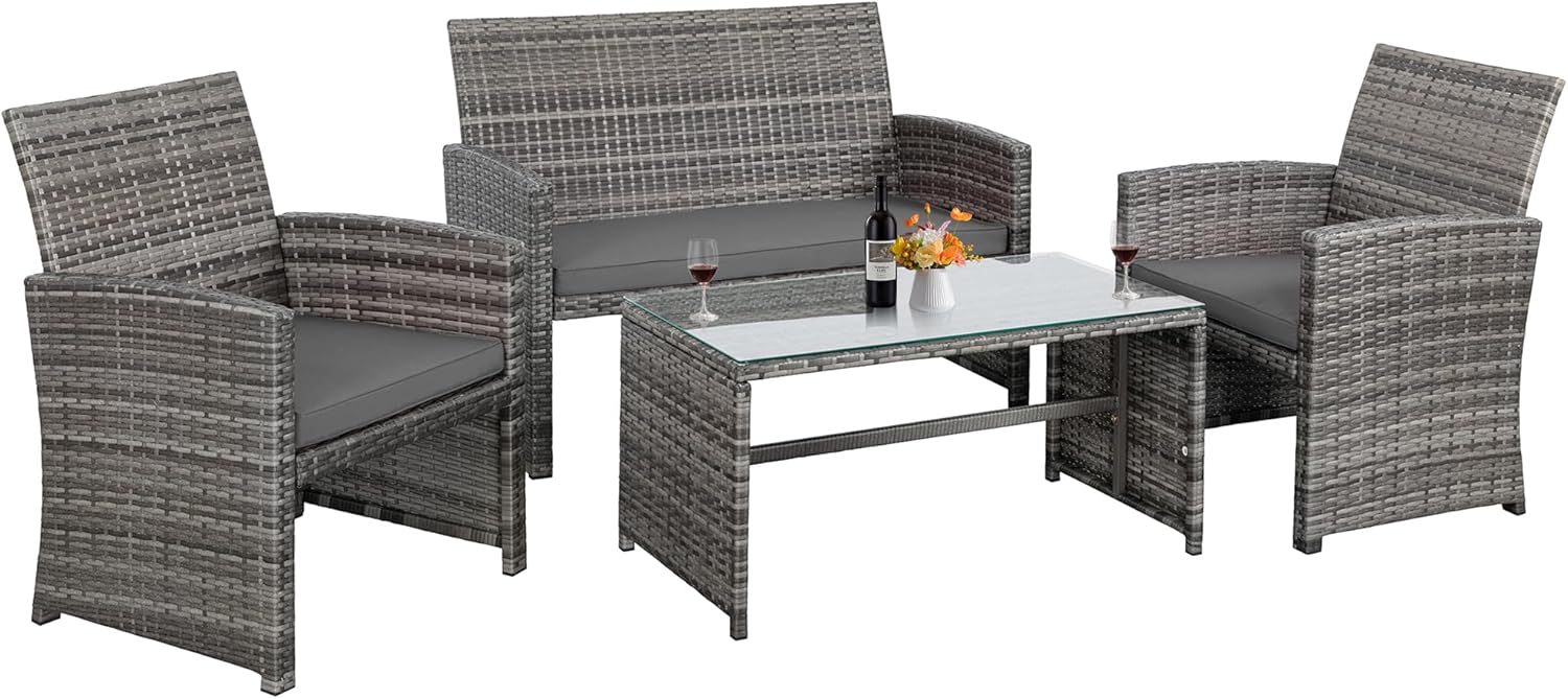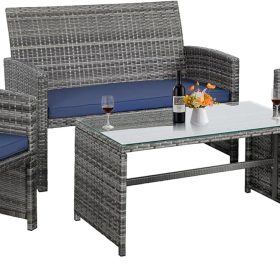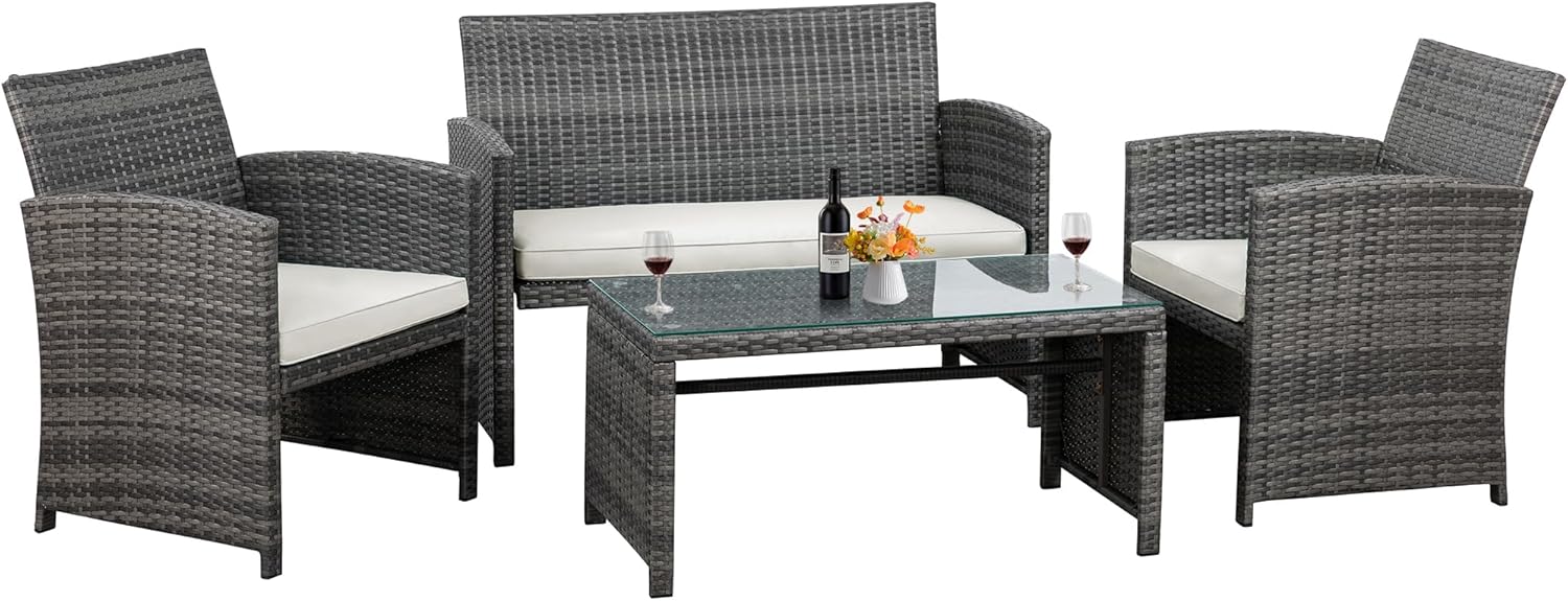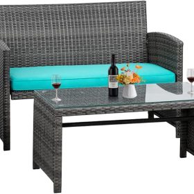 - 【Exquisite Tempered Glass Table】Our outdoor four-piece set comes with a coffee table with a tempered glass top to create a smooth, sturdy surface for food and drinks; don’t worry about overturning liquids, as the glass tabletop can be restored with a simple wipe. All while adding a touch of elegance to your outdoor space.