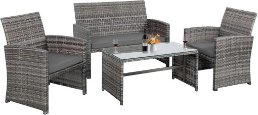 - 【Easy to Assemble】This 4-piece patio furniture set comes with instructions, all hardware, and necessary tools. If you connect all of the pieces before tightening the screws, it should come together pretty easily.