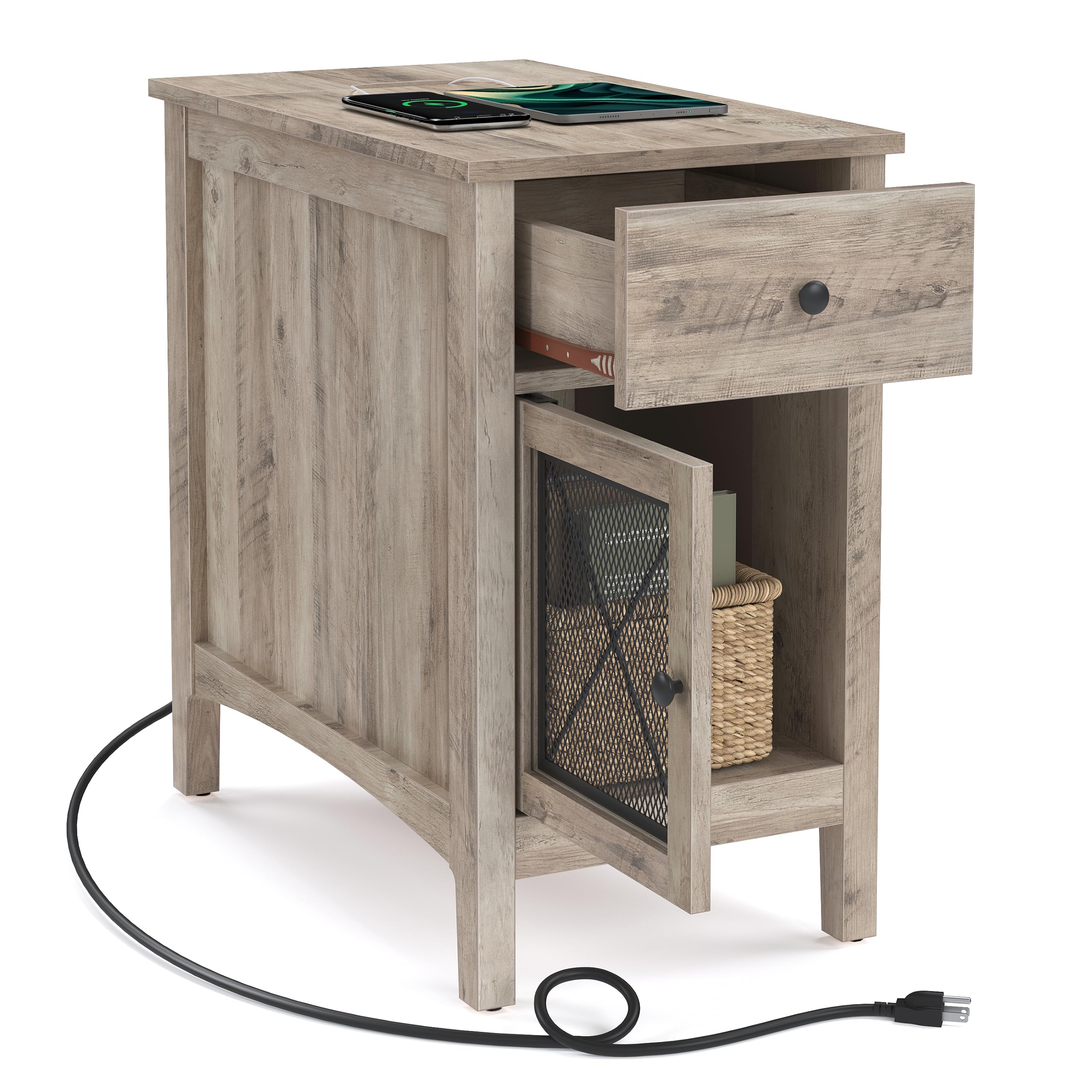 Side Table with Storage End Table with USB Ports and Outlets Nightstand with Charging Station