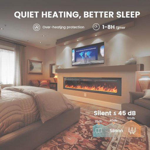 - Quiet and Secure Operation: Silonn’s electric fireplace operates at a sound level of less than 45 dB to ensure a peaceful environment that doesn’t disturb relaxation or sleep. With a child lock and a 1-8 hour timer, you can enjoy peace of mind for your home and entire family.