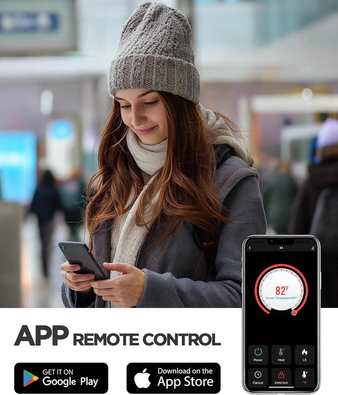 - Smart App Control: This indoor fireplace features intelligent app control, allowing you to operate it anytime, anywhere to pre-warm your room. You can also operate the fireplace with the included remote or easy-to-use control panel, offering maximum convenience and flexibility.