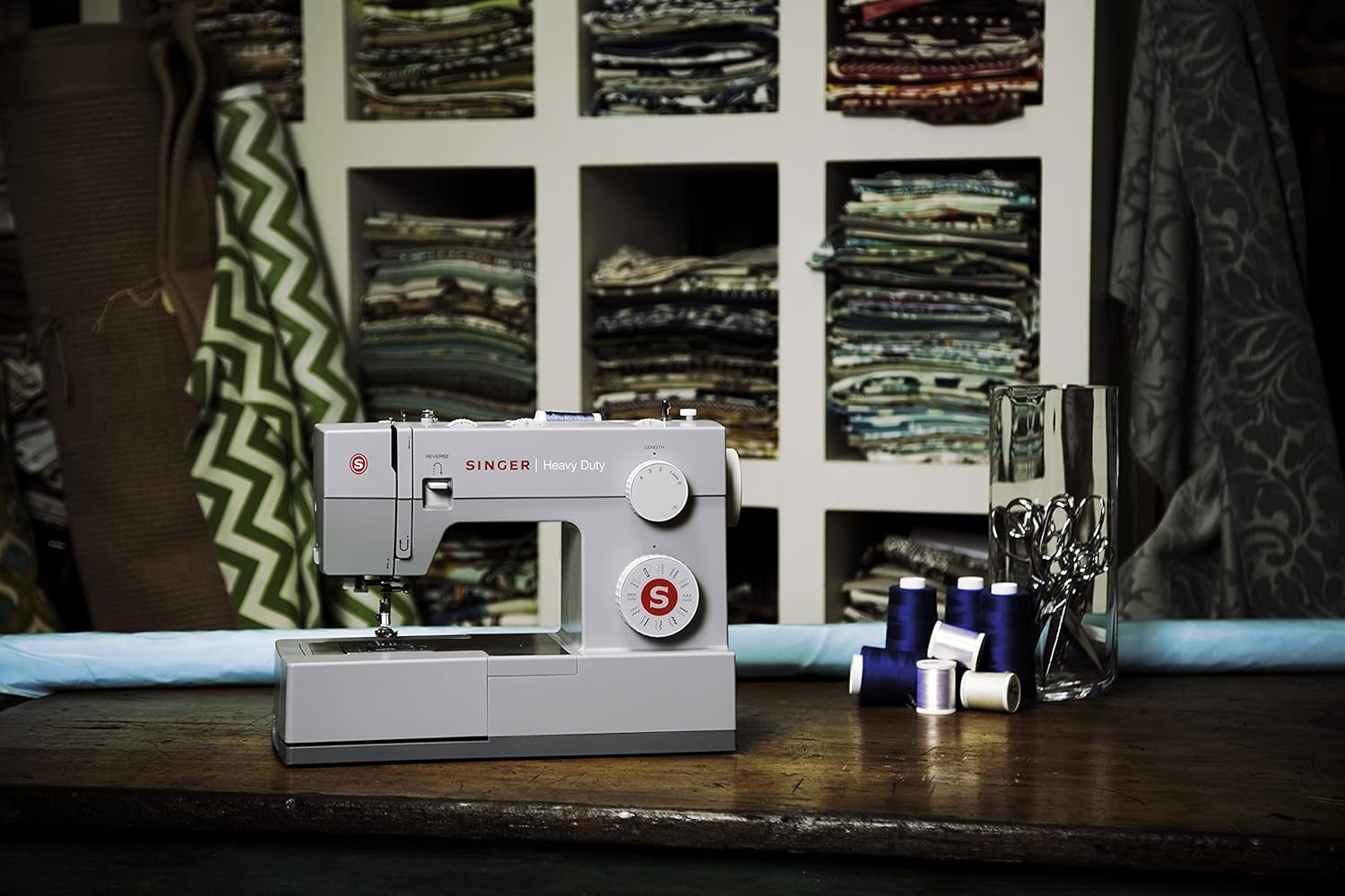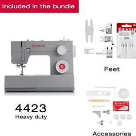 - HEAVY DUTY METAL FRAME: The Singer 4423 heavy duty sewing machine is a true workhorse. With a heavy-duty metal interior frame, stainless steel bedframe, extra-high sewing speed and powerful motor, this sewing machine can sew through a variety of heavy weight fabrics and provides long lasting stability