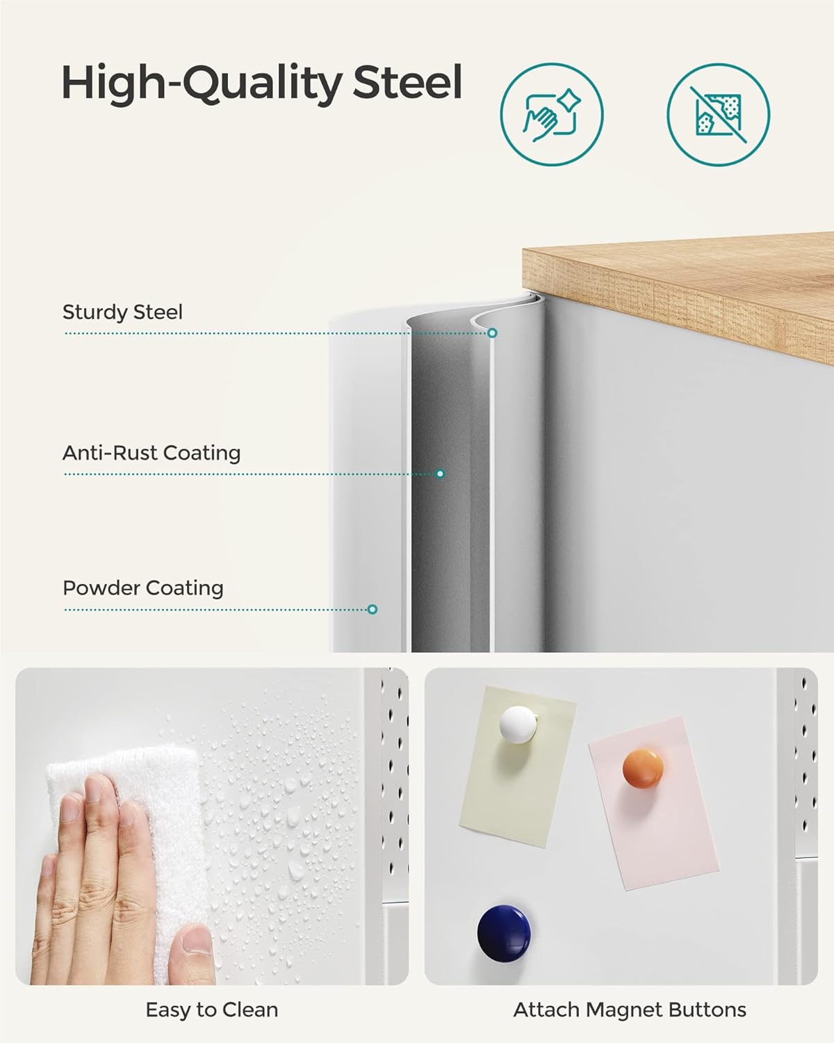 - Durable & Easy to Maintain: Constructed from quality materials, this 15.7”D x 31.5”W x 29.9”H sideboard is built to last and can support heavy items (tabletop holds up to 110 lb). The steel cabinet body is smooth for effortless cleaning