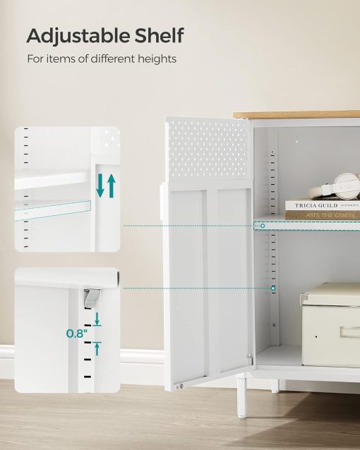 - Multipurpose Holes: The holes on the cabinet doors ensures excellent ventilation. Additionally, you can attach a few hooks (not included) to hang your personal items