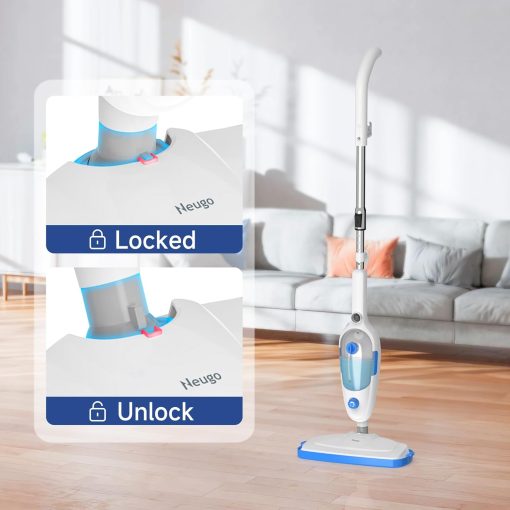 - Adjustable Height without Bending Down : Neugo steam mop features an adjustable height design that allows you to clean without bending down, making it perfect for those longtime houseworker. The comfortable handle & low center of gravity is designed to reduce hand fatigue and provide a comfortable grip, making cleaning a breeze