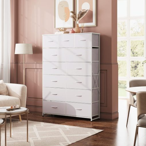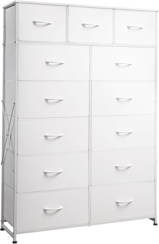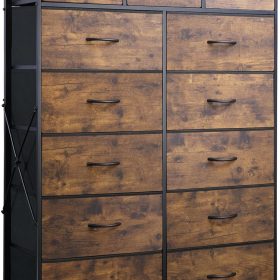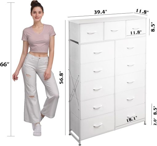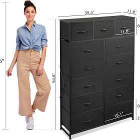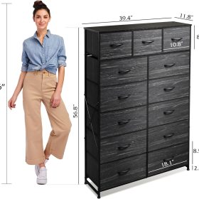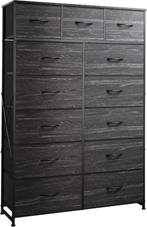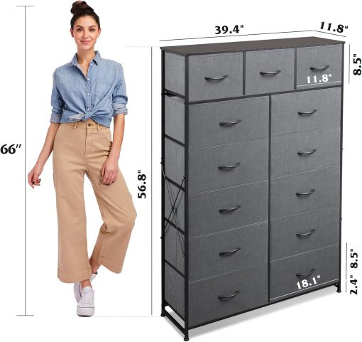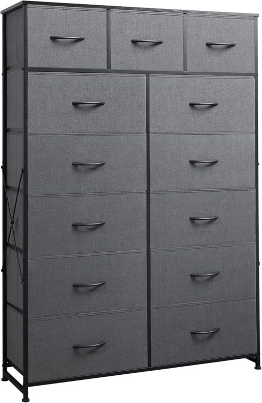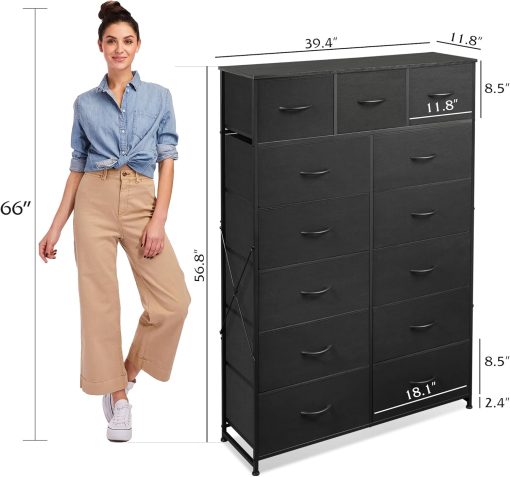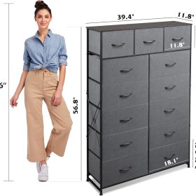 WLIVE Storage Organizer Unit with 13 Fabric Bins, Storage Drawers Organizer with Steel Frame, Tall Storage Tower Organizaton for Living Room, Hallway, Office, Charcoal Black