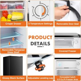 - Spacious Interior: Despite its compact size, the small fridge boasts a spacious interior with 1 crisper drawer, 2 adjustable shelves, and door compartments. This smart design allows you to maximize storage space and organize your items efficiently, making it easy to find what you need when you need it.