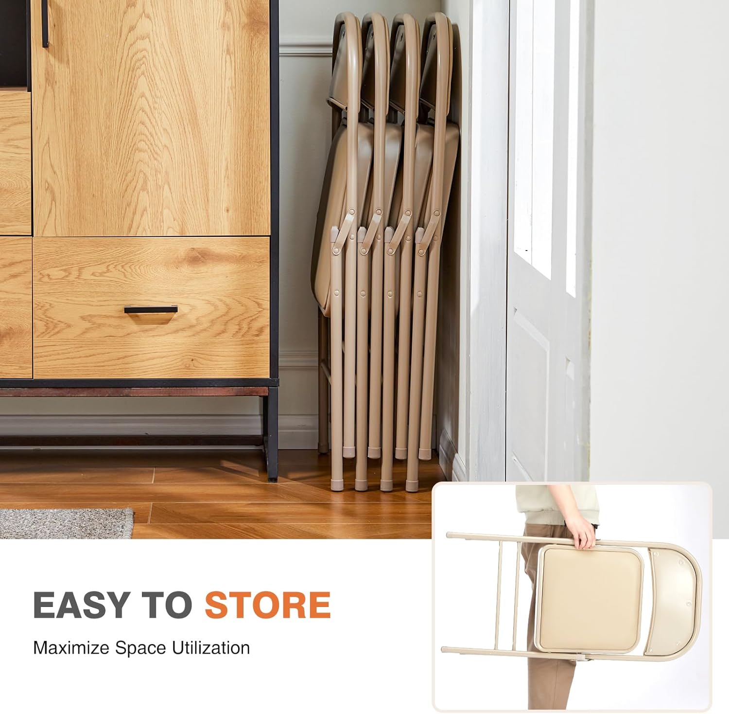 The seat is made of high-density sponge, soft, comfortable and has strong resilience. The leather design makes the folding chair easier to clean.