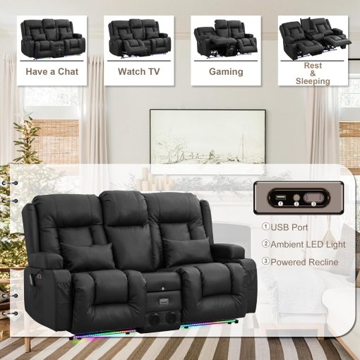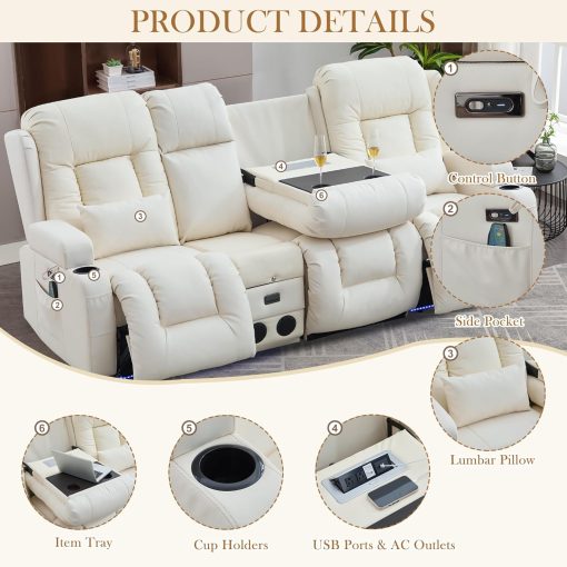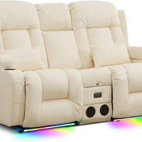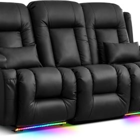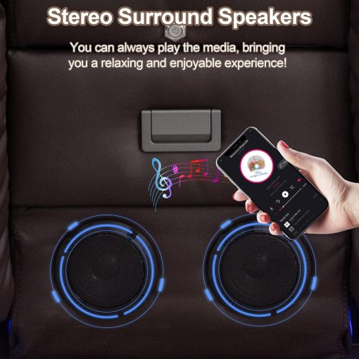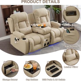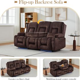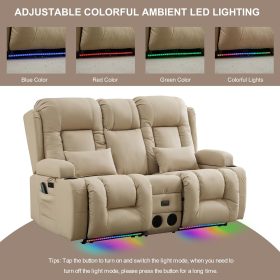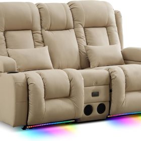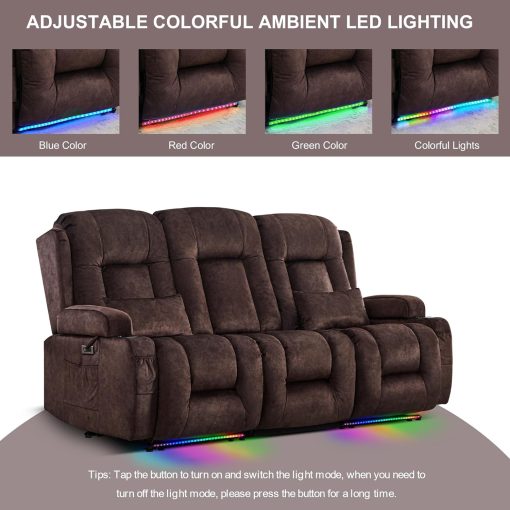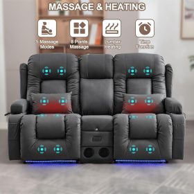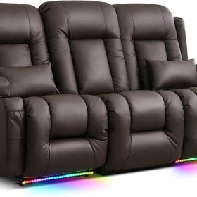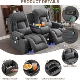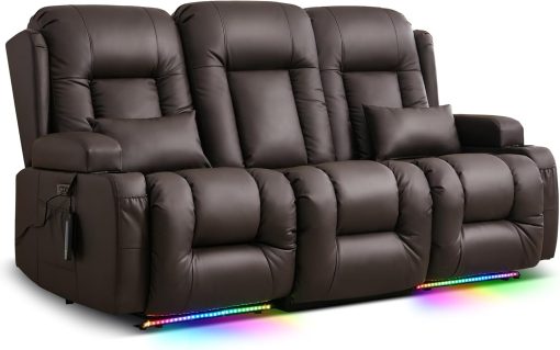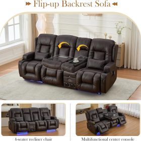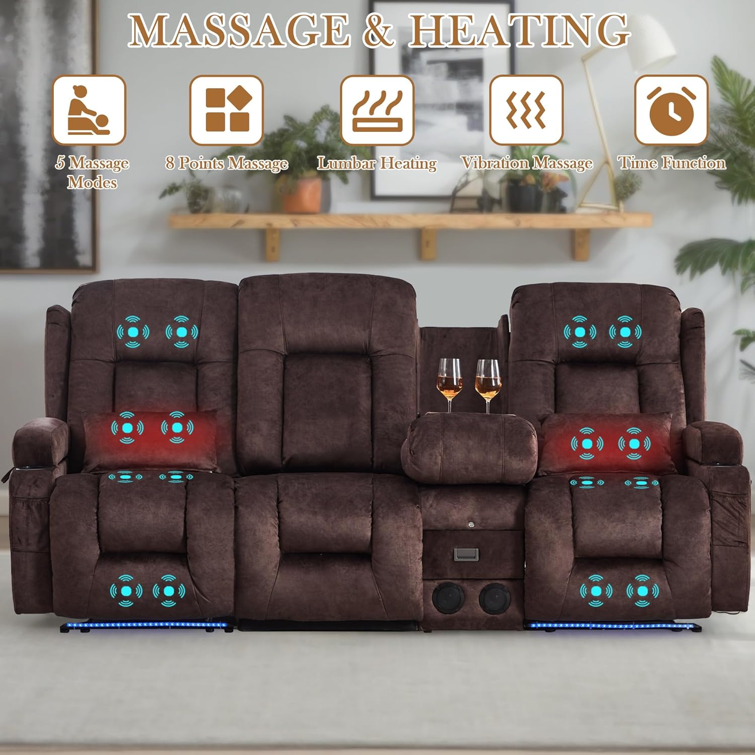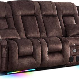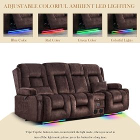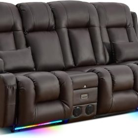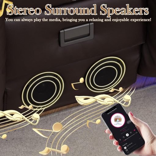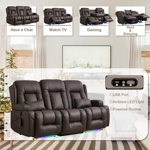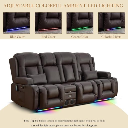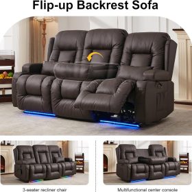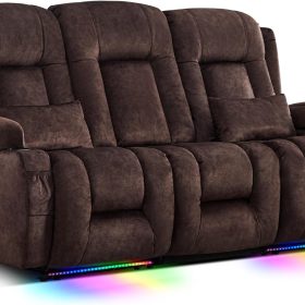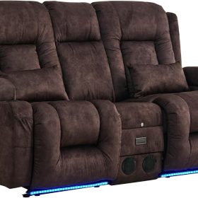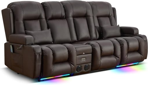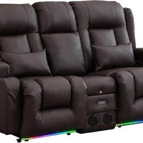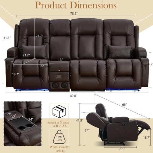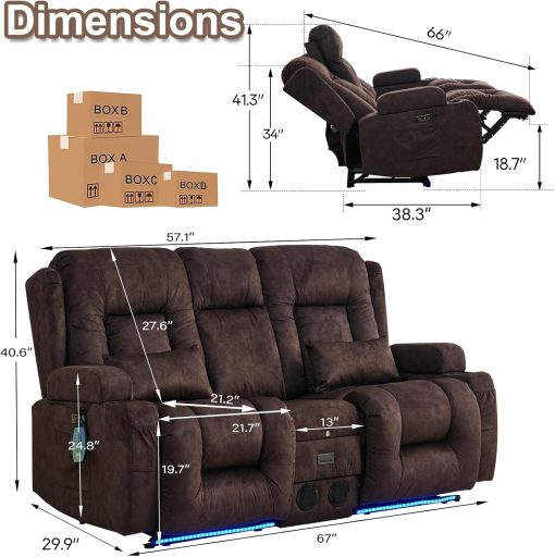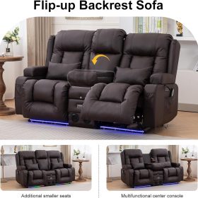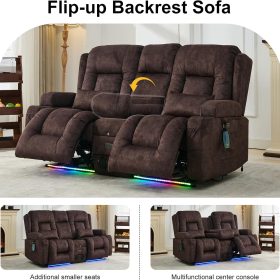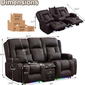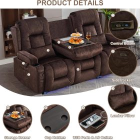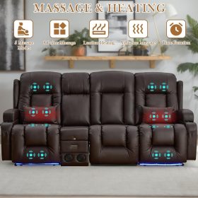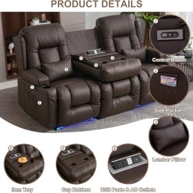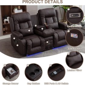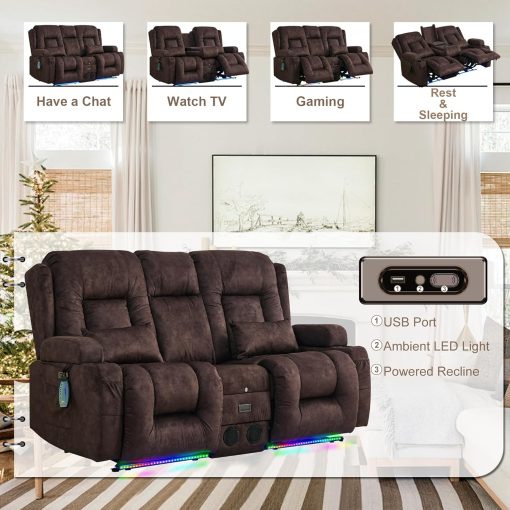 TUNYI Power Loveseat Recliner Sofa with Massage & Heat Home Theater Seating with Console Electric Recliner RV Sofa with USB/Outlet/Storage/Side Pocket/LED Light/Speaker (Brown, Loveseat)