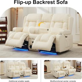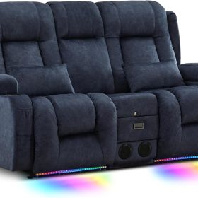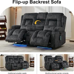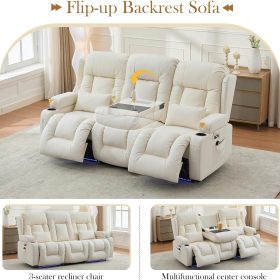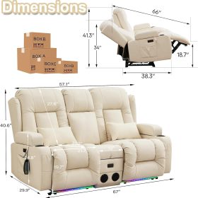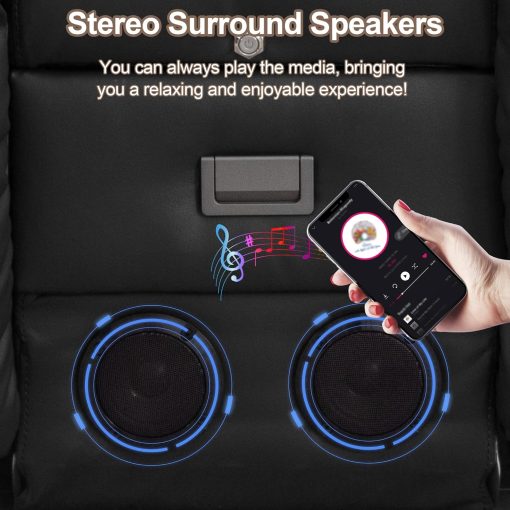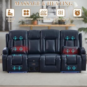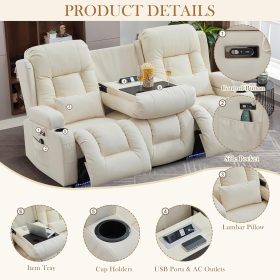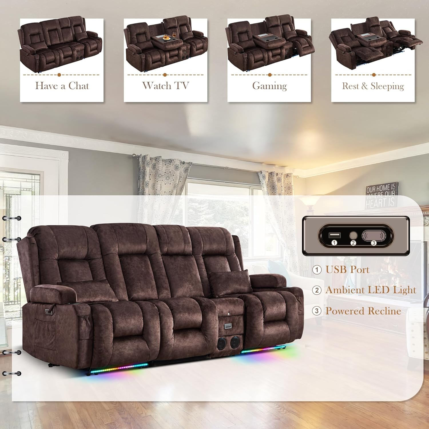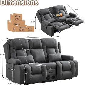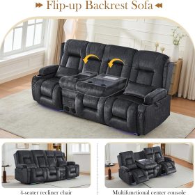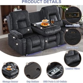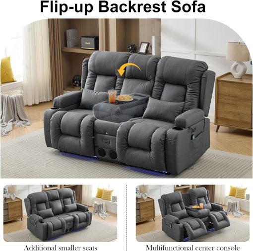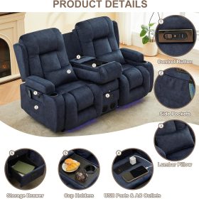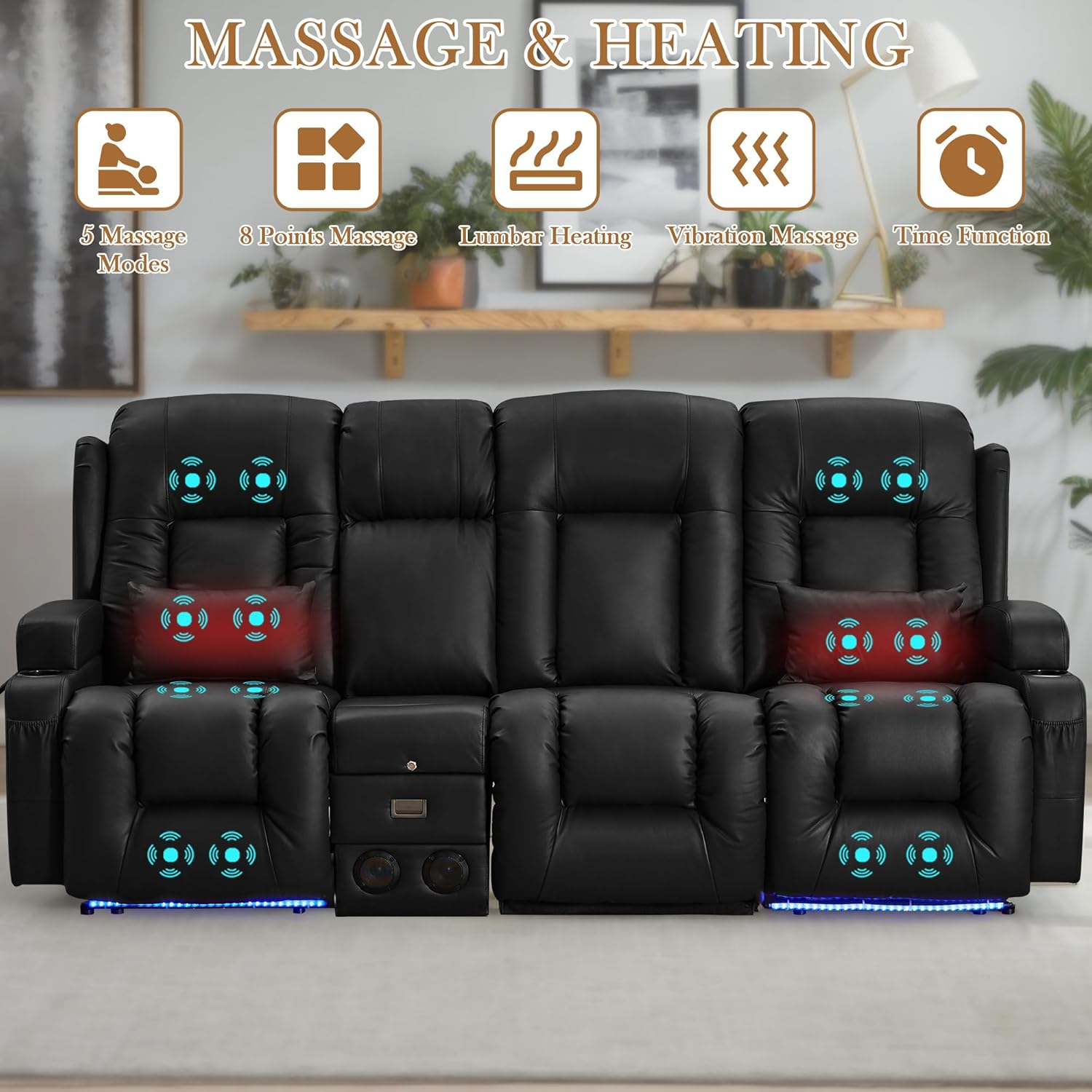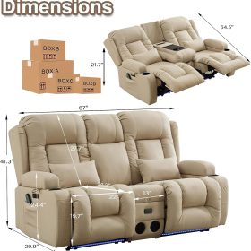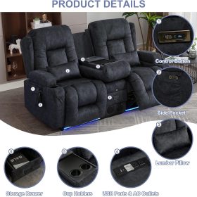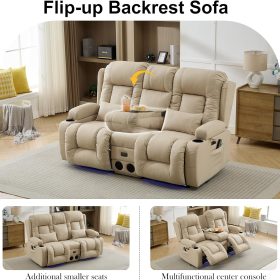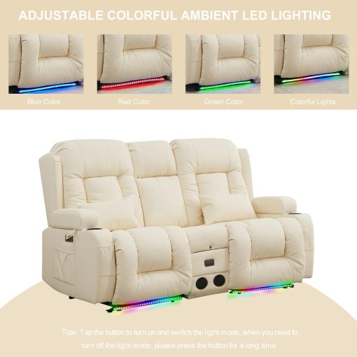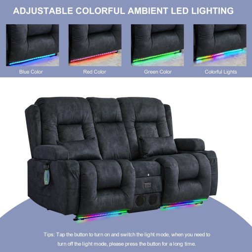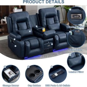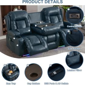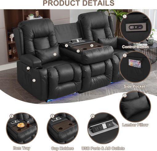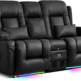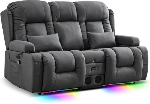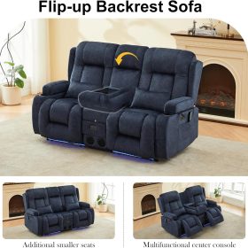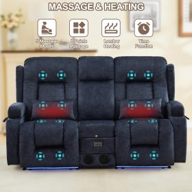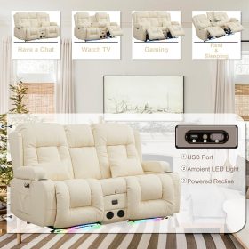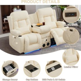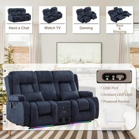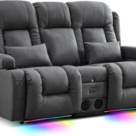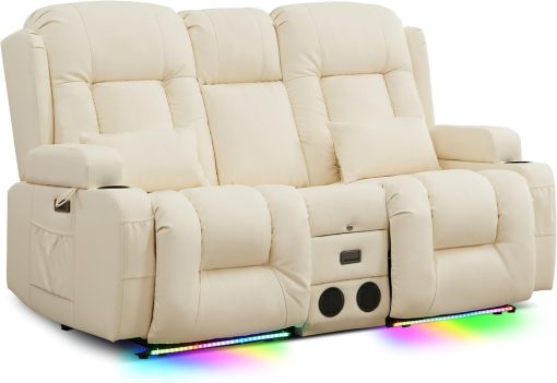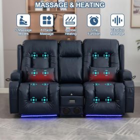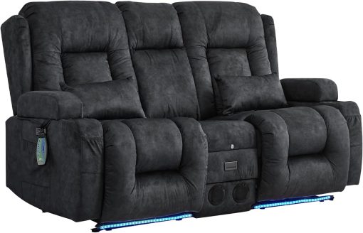TUNYI Power Loveseat Recliner Sofa with Massage & Heat Home Theater Seating with Console Electric Recliner RV Sofa with USB/Outlet/Storage/Side Pocket/LED Light/Speaker (Brown, Loveseat)