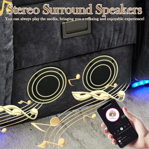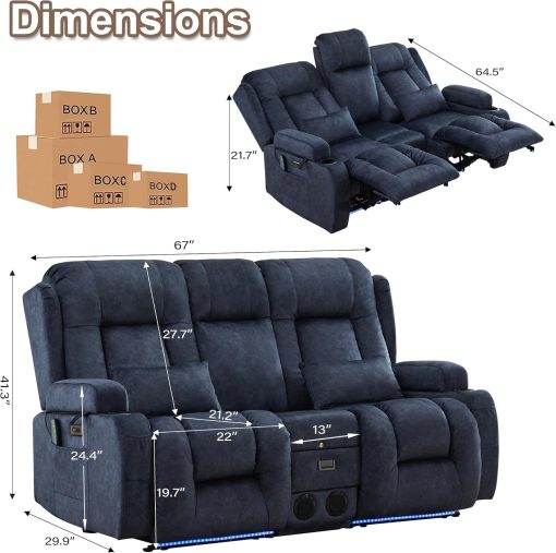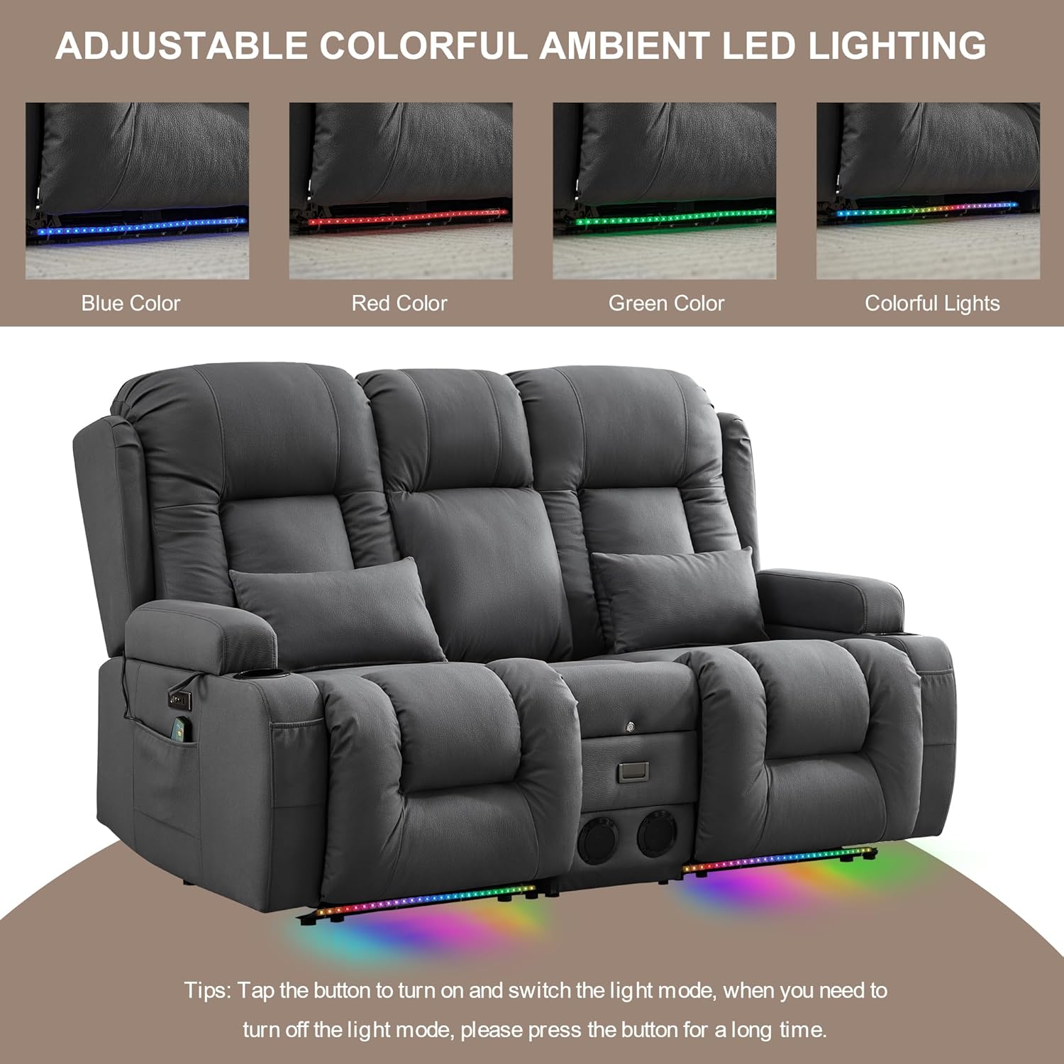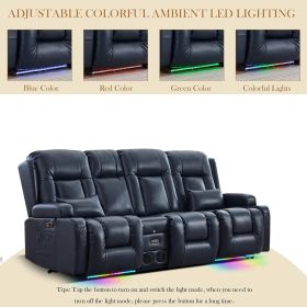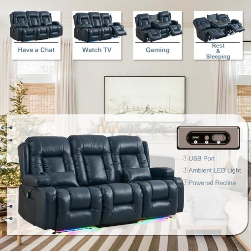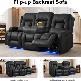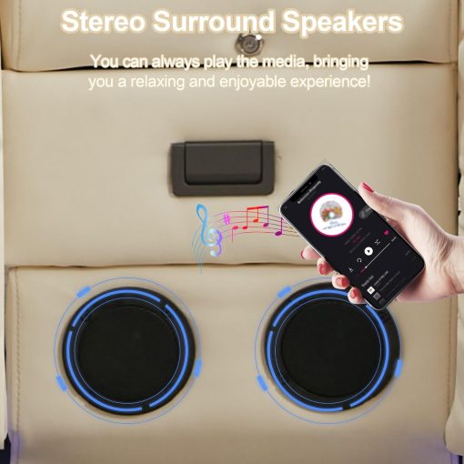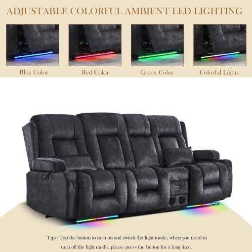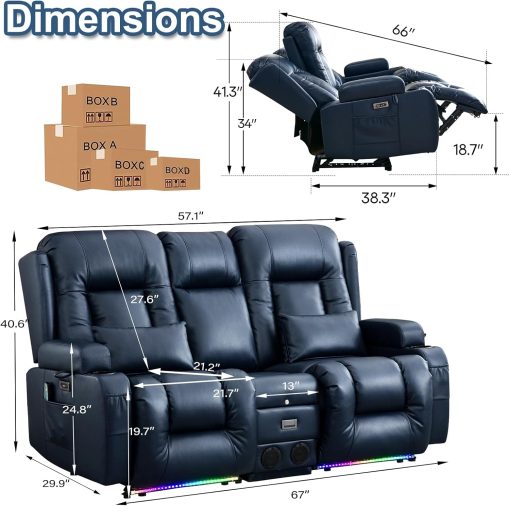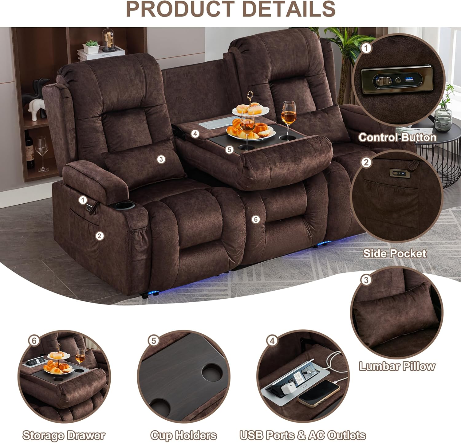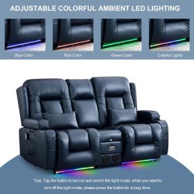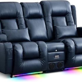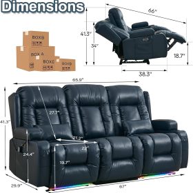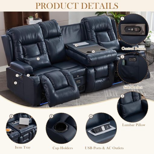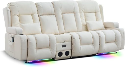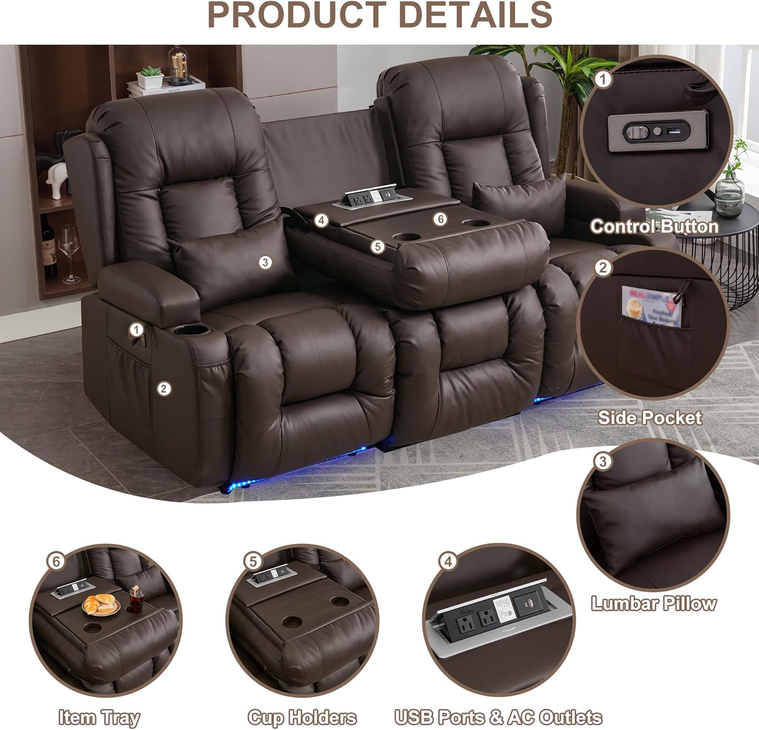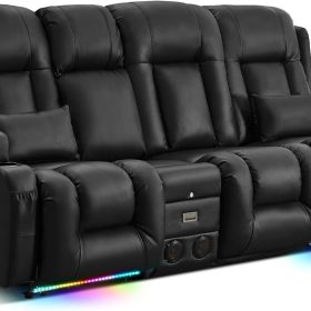 TUNYI Power Loveseat Recliner Sofa with Massage & Heat Home Theater Seating with Console Electric Recliner RV Sofa with USB/Outlet/Storage/Side Pocket/LED Light/Speaker (Brown, Loveseat)