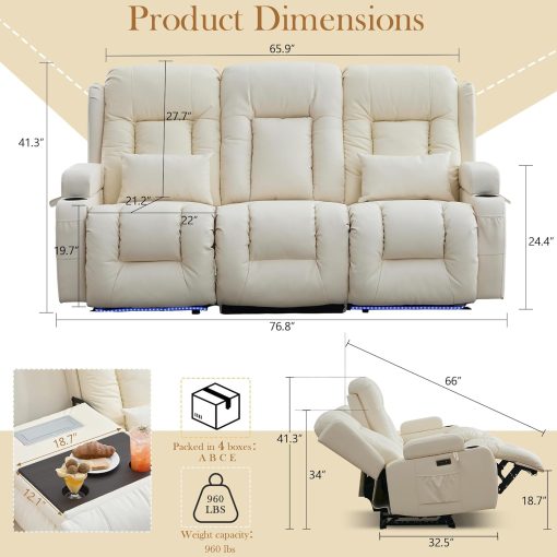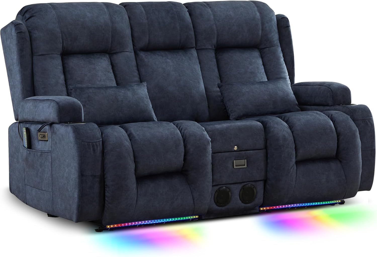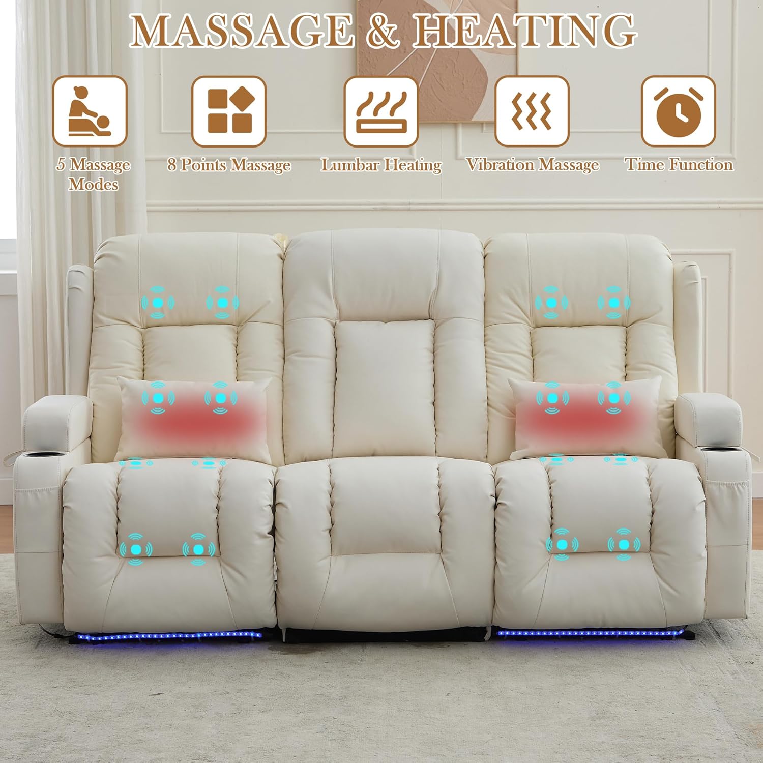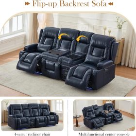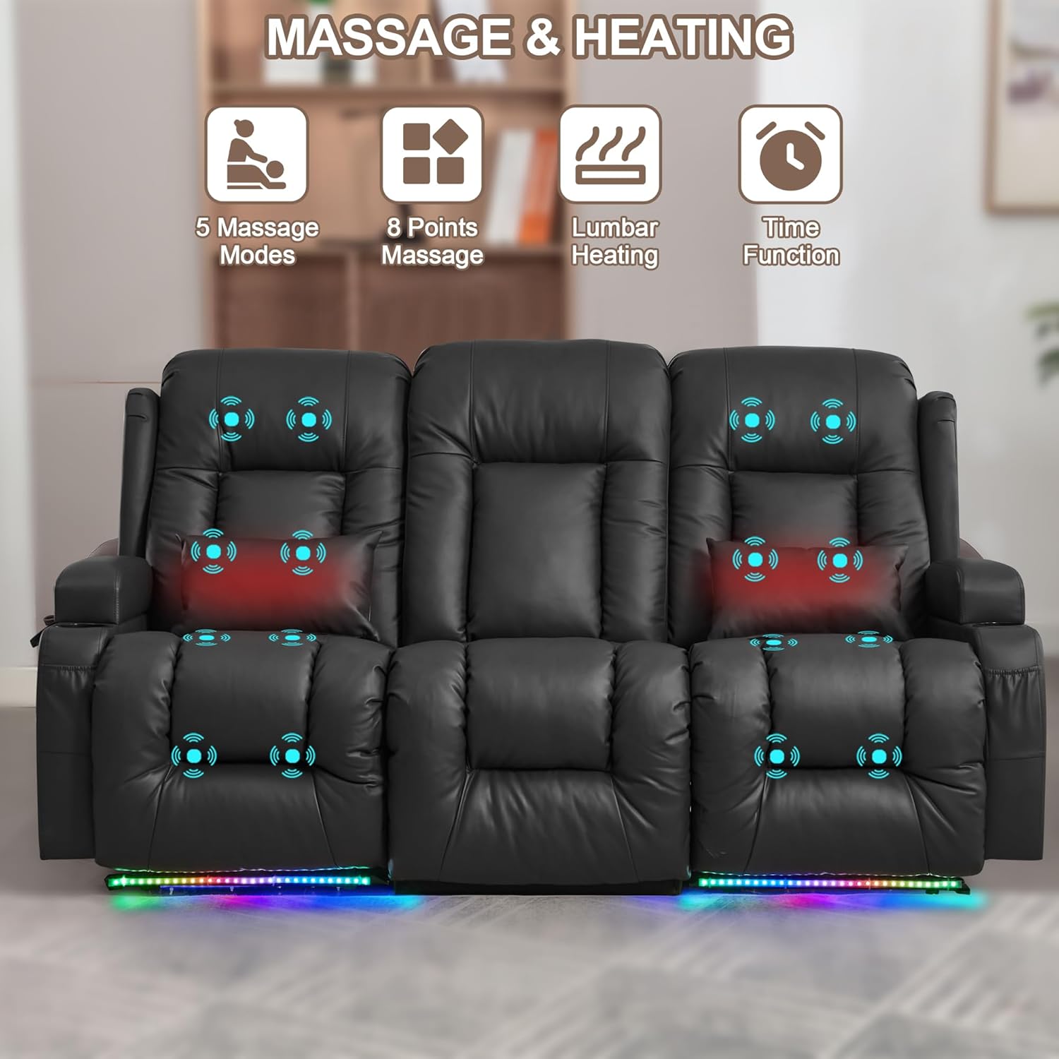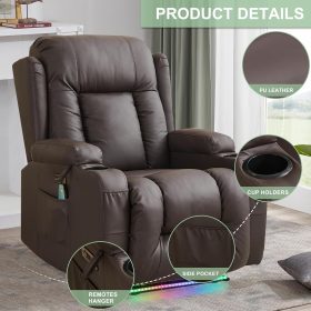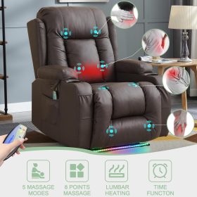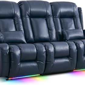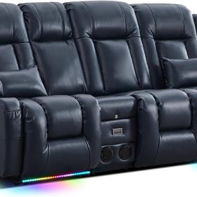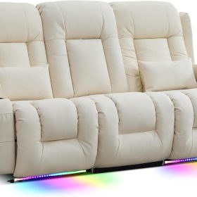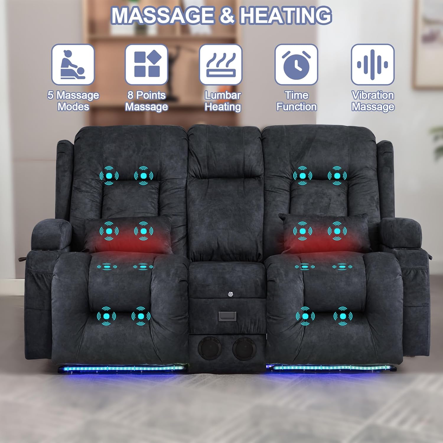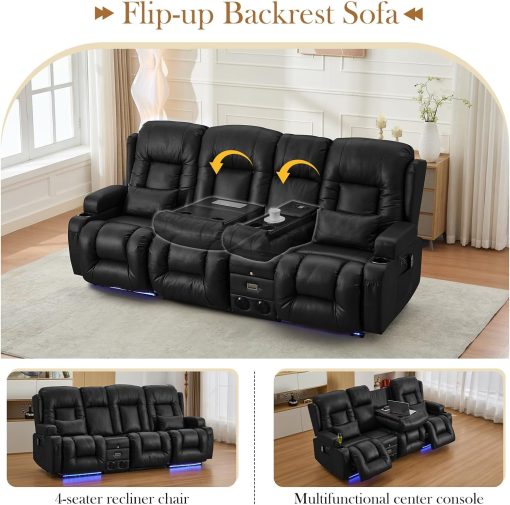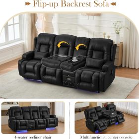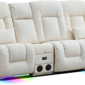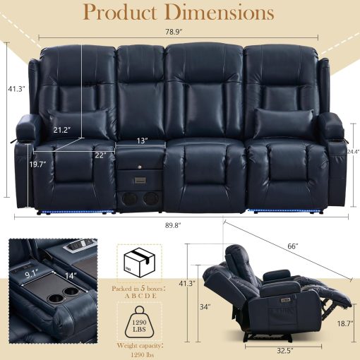 TUNYI Power Loveseat Recliner Sofa with Massage & Heat Home Theater Seating with Console Electric Recliner RV Sofa with USB/Outlet/Storage/Side Pocket/LED Light/Speaker (Brown, Loveseat)