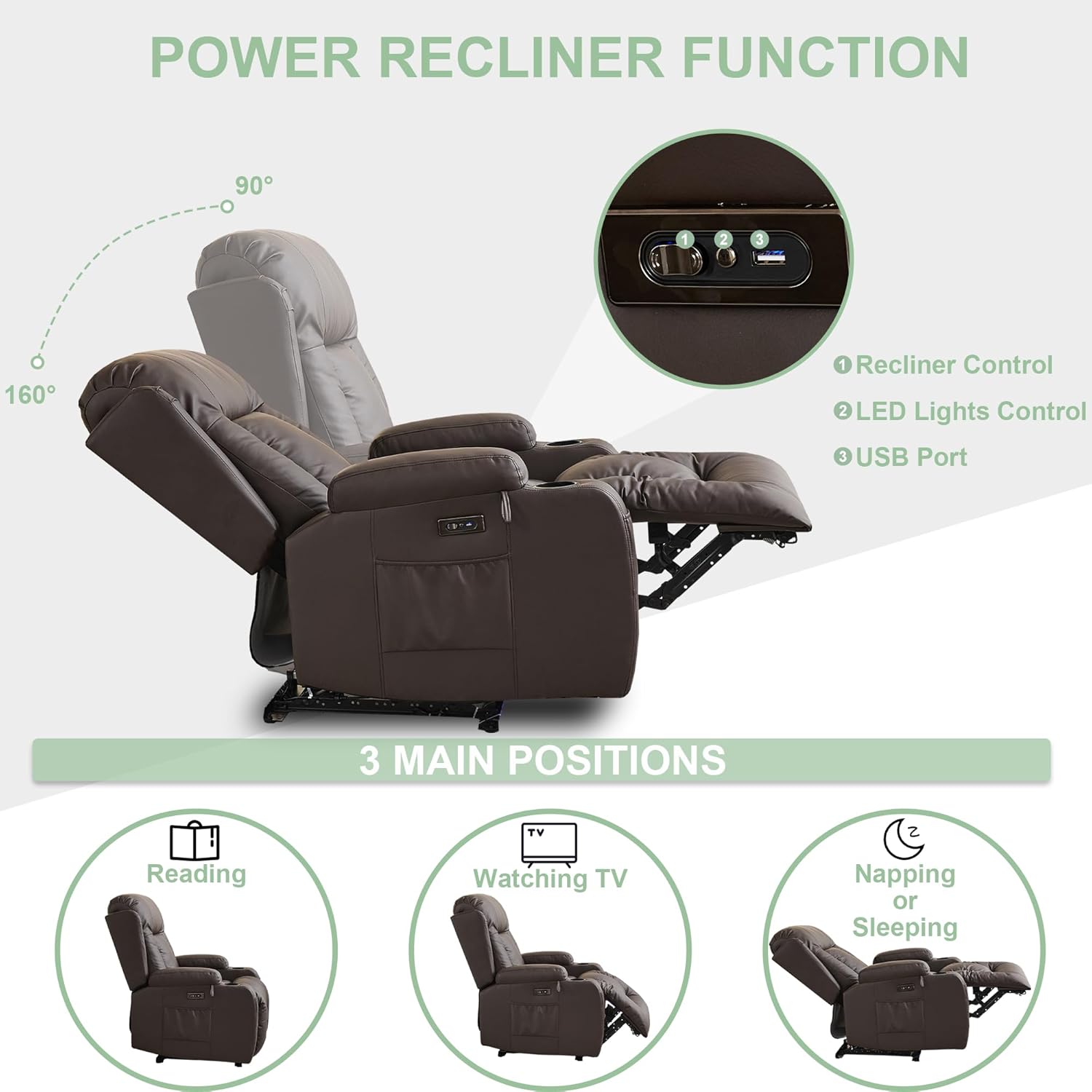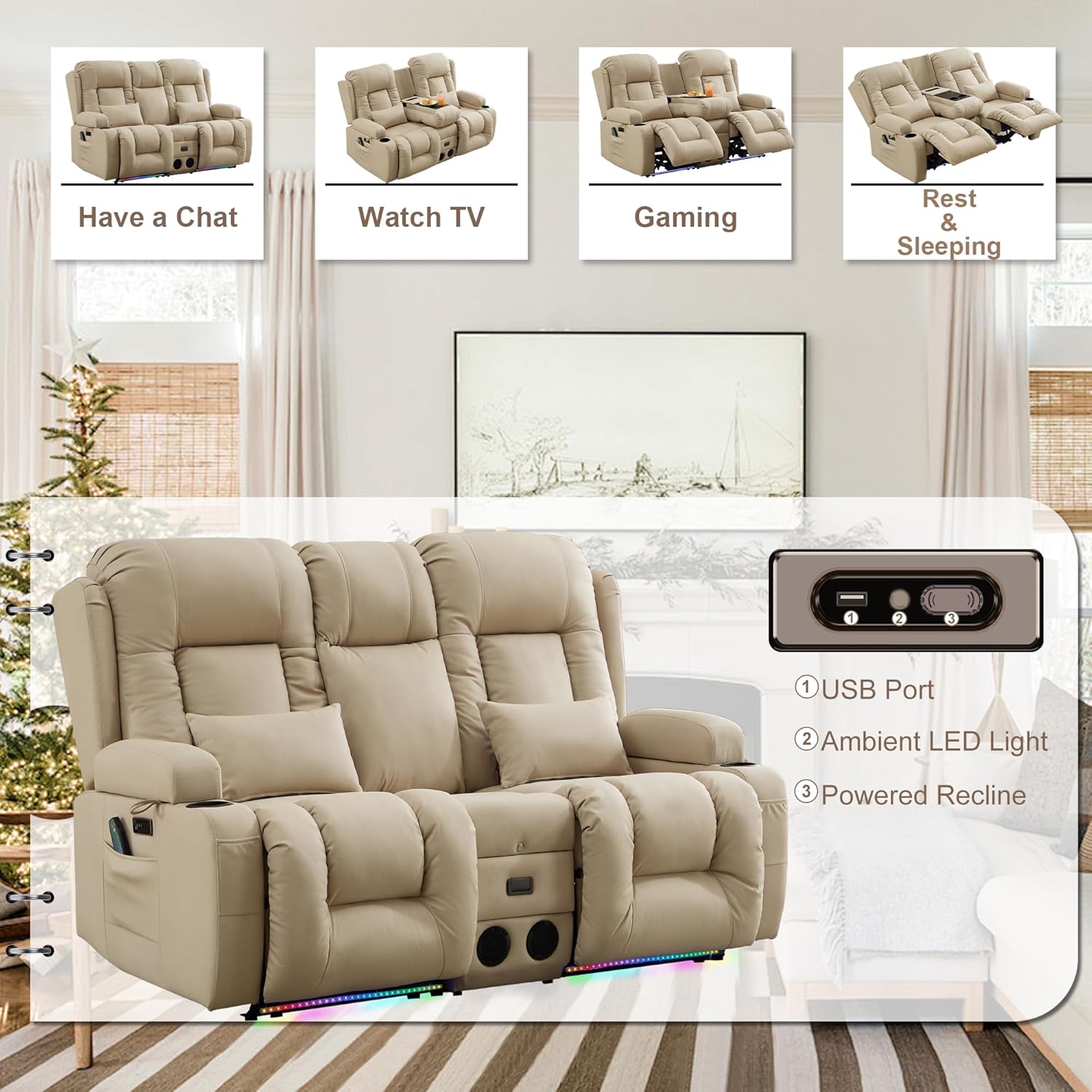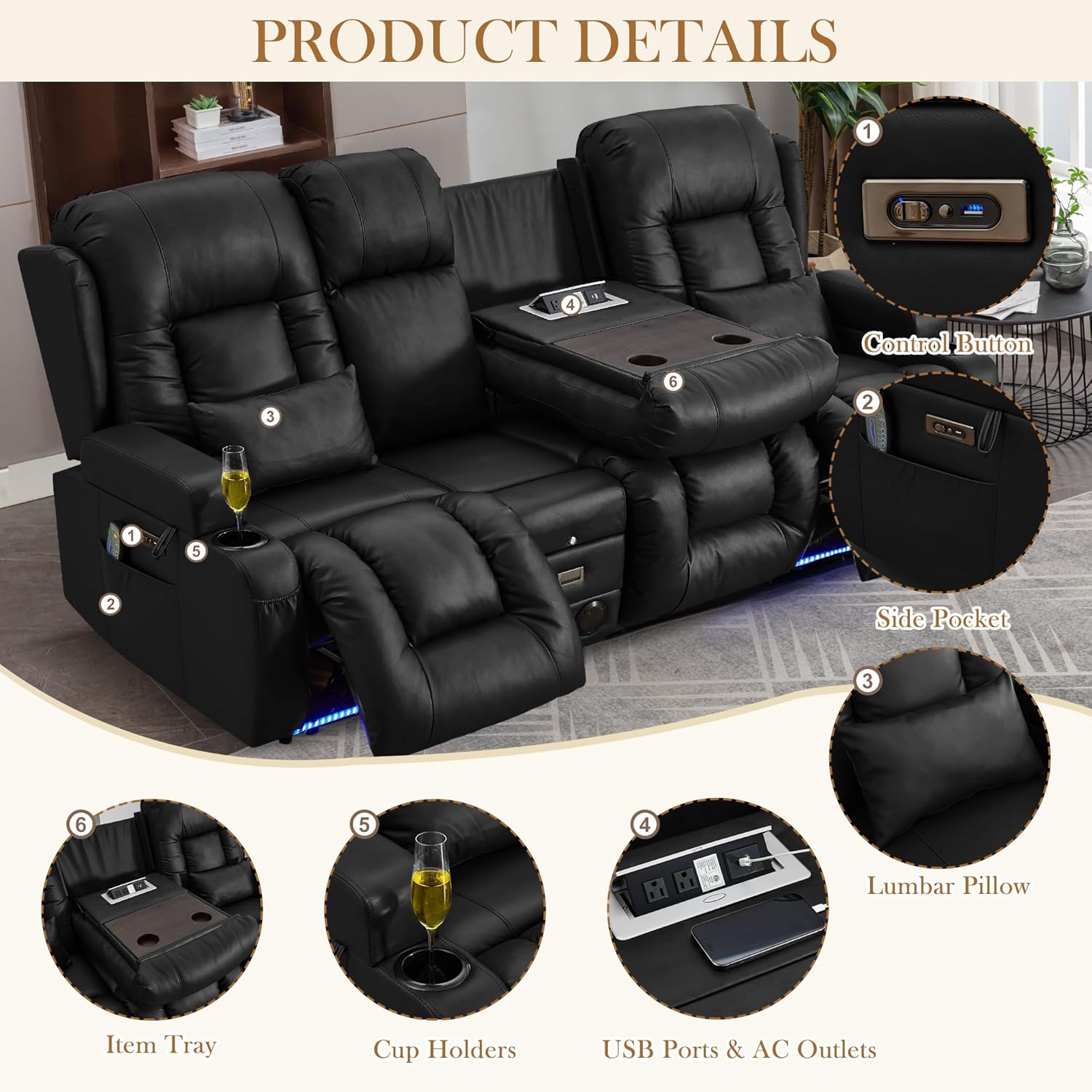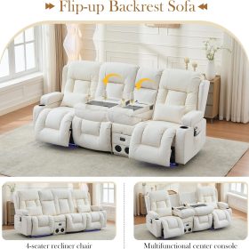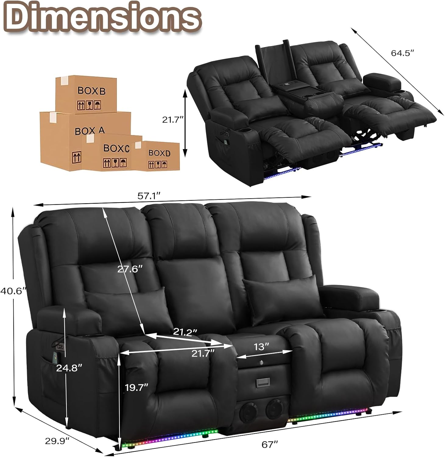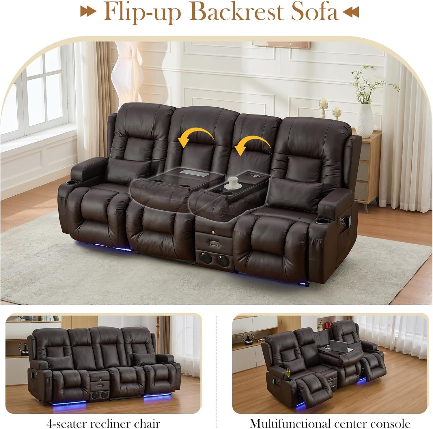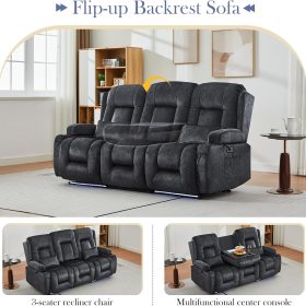 TUNYI Power Loveseat Recliner Sofa with Massage & Heat Home Theater Seating with Console Electric Recliner RV Sofa with USB/Outlet/Storage/Side Pocket/LED Light/Speaker (Brown, Loveseat)