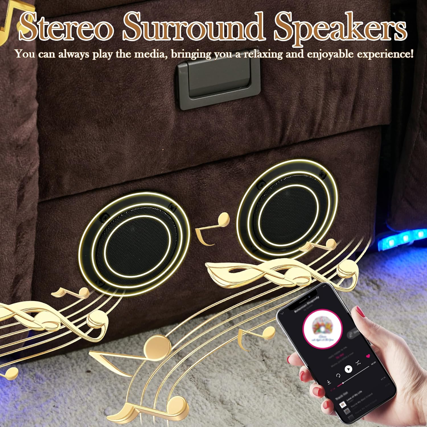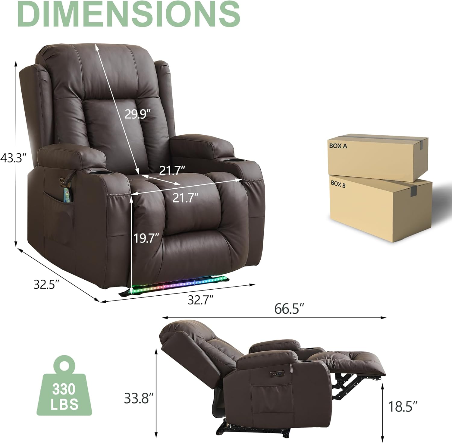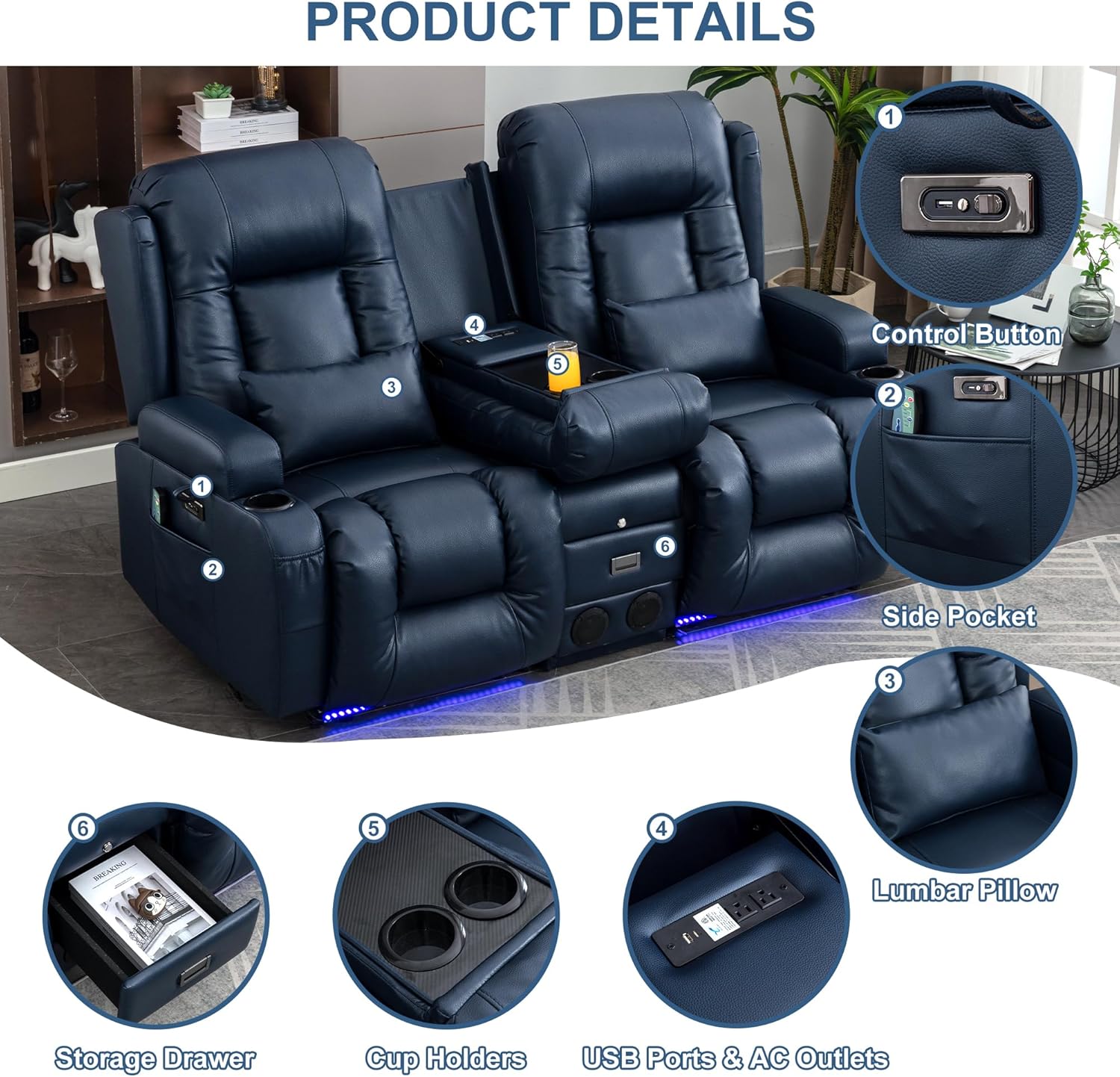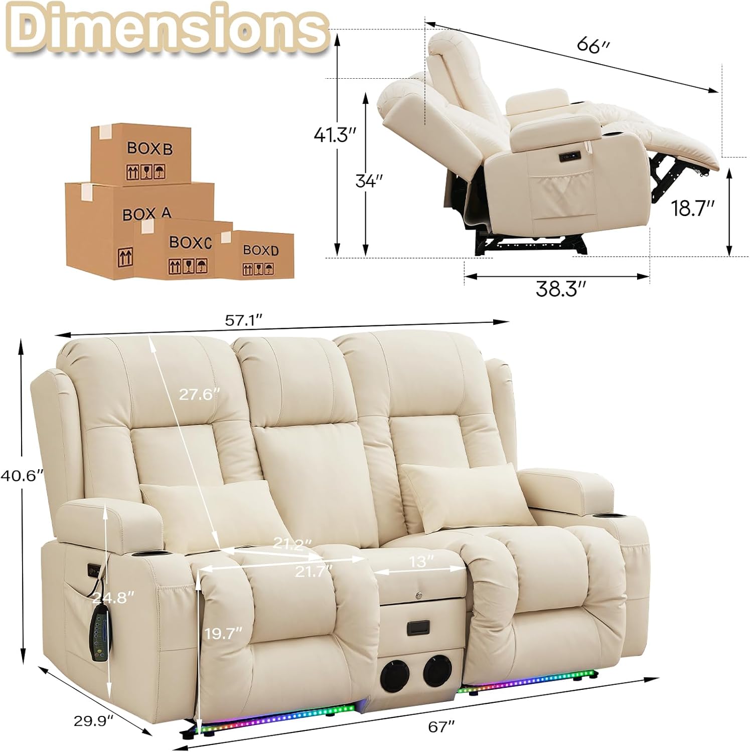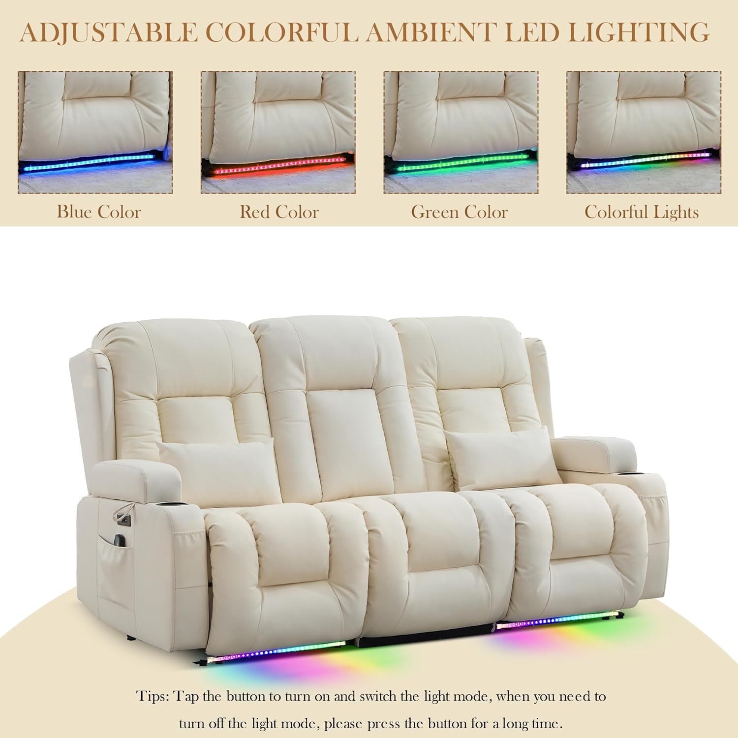 TUNYI Power Loveseat Recliner Sofa with Massage & Heat Home Theater Seating with Console Electric Recliner RV Sofa with USB/Outlet/Storage/Side Pocket/LED Light/Speaker (Brown, Loveseat)