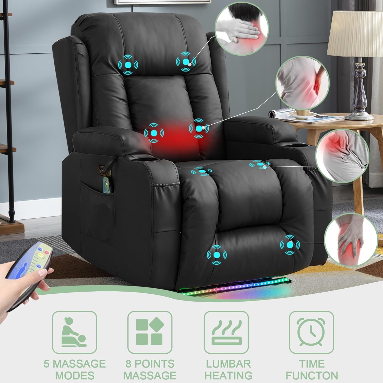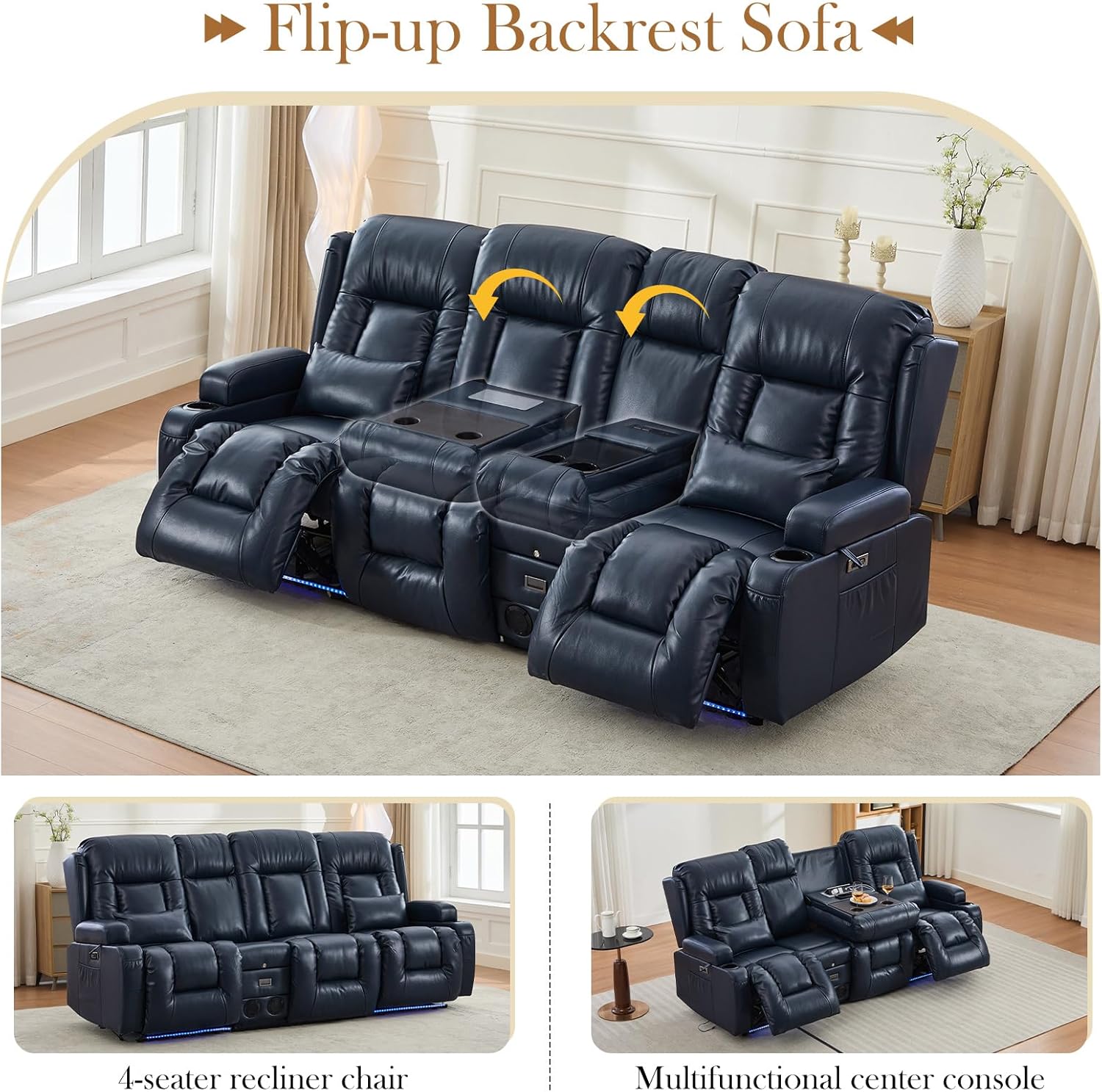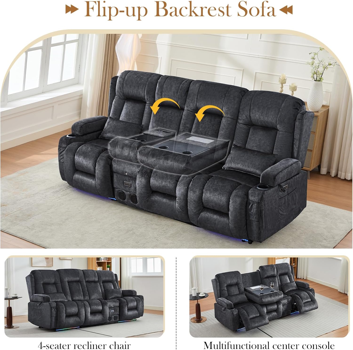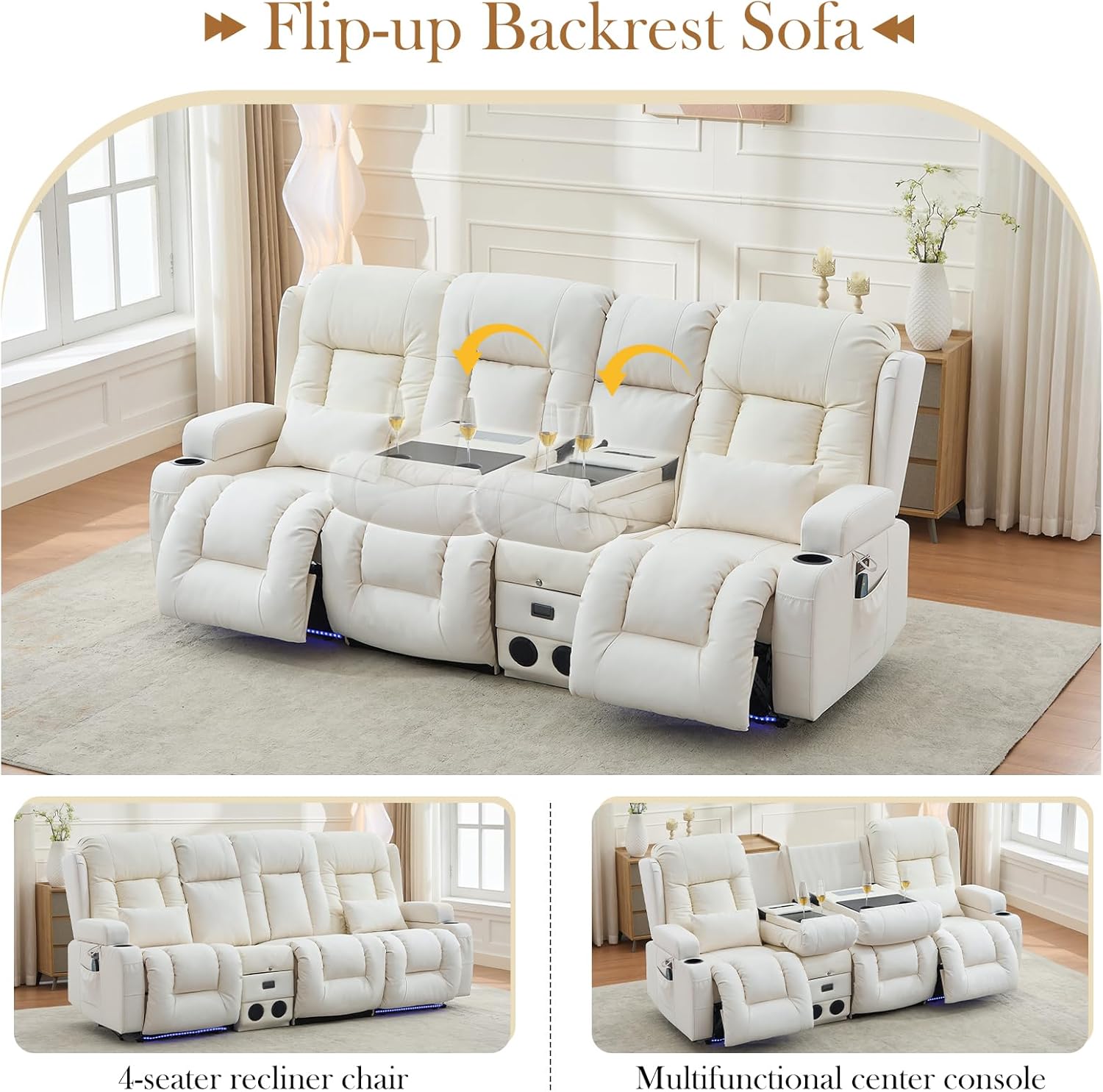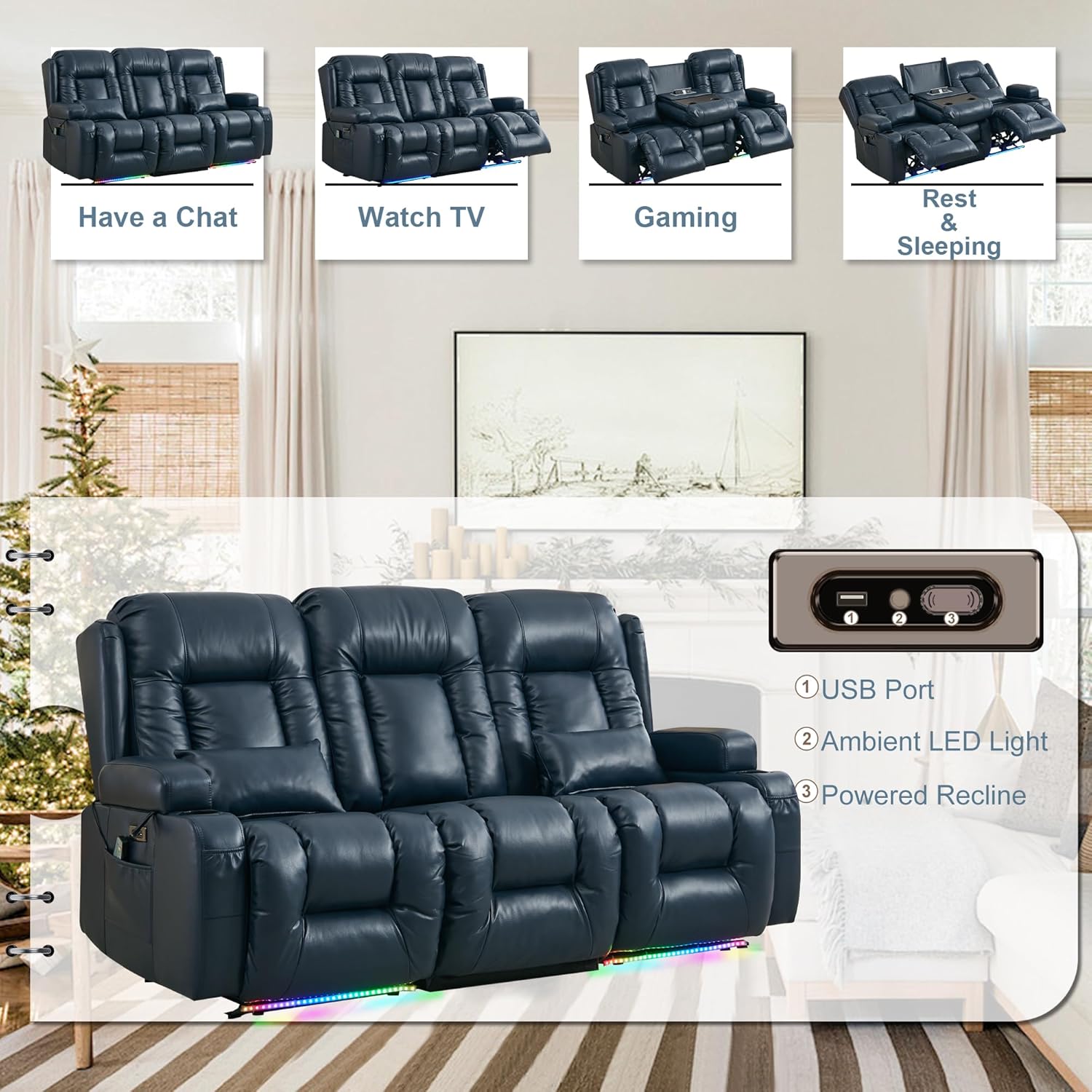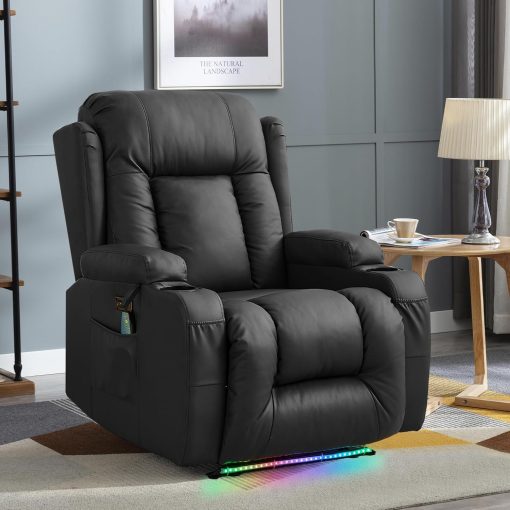 TUNYI Power Loveseat Recliner Sofa with Massage & Heat Home Theater Seating with Console Electric Recliner RV Sofa with USB/Outlet/Storage/Side Pocket/LED Light/Speaker (Brown, Loveseat)