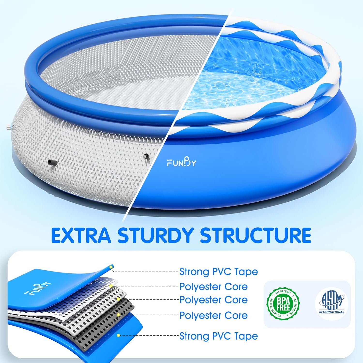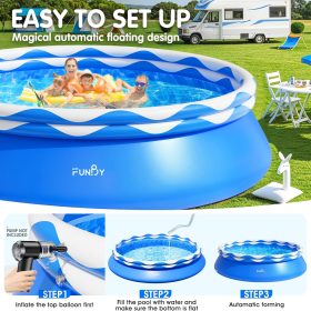 Upgraded Double Rings Inflatable Above Ground Pool Easy Set,Inflatable Swimming Pool for Adults,Inflatable Top Rings Above Ground Swimming Pool,Water Ripple Print,500 Gal Capacity (8ftx26in)