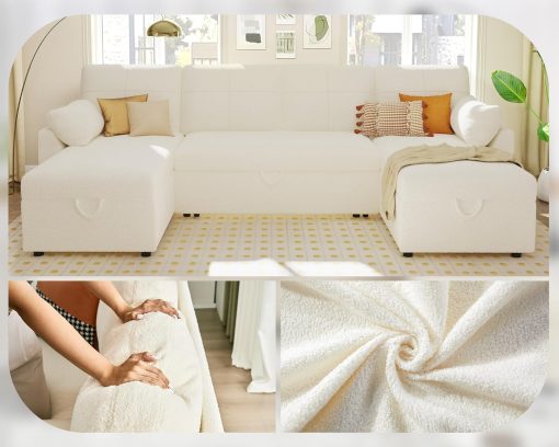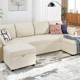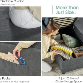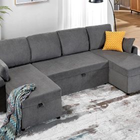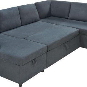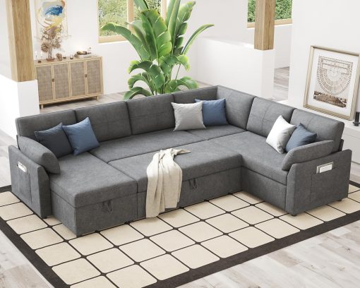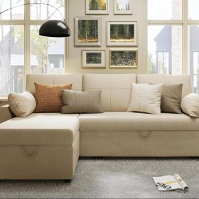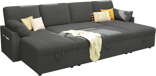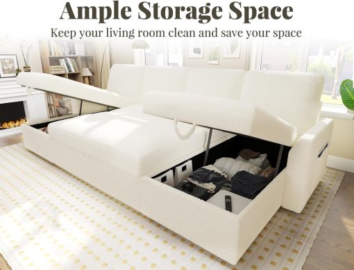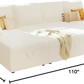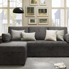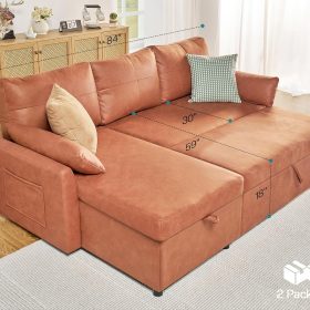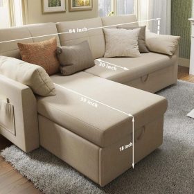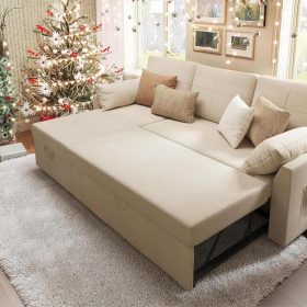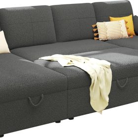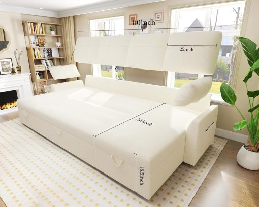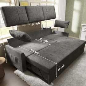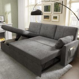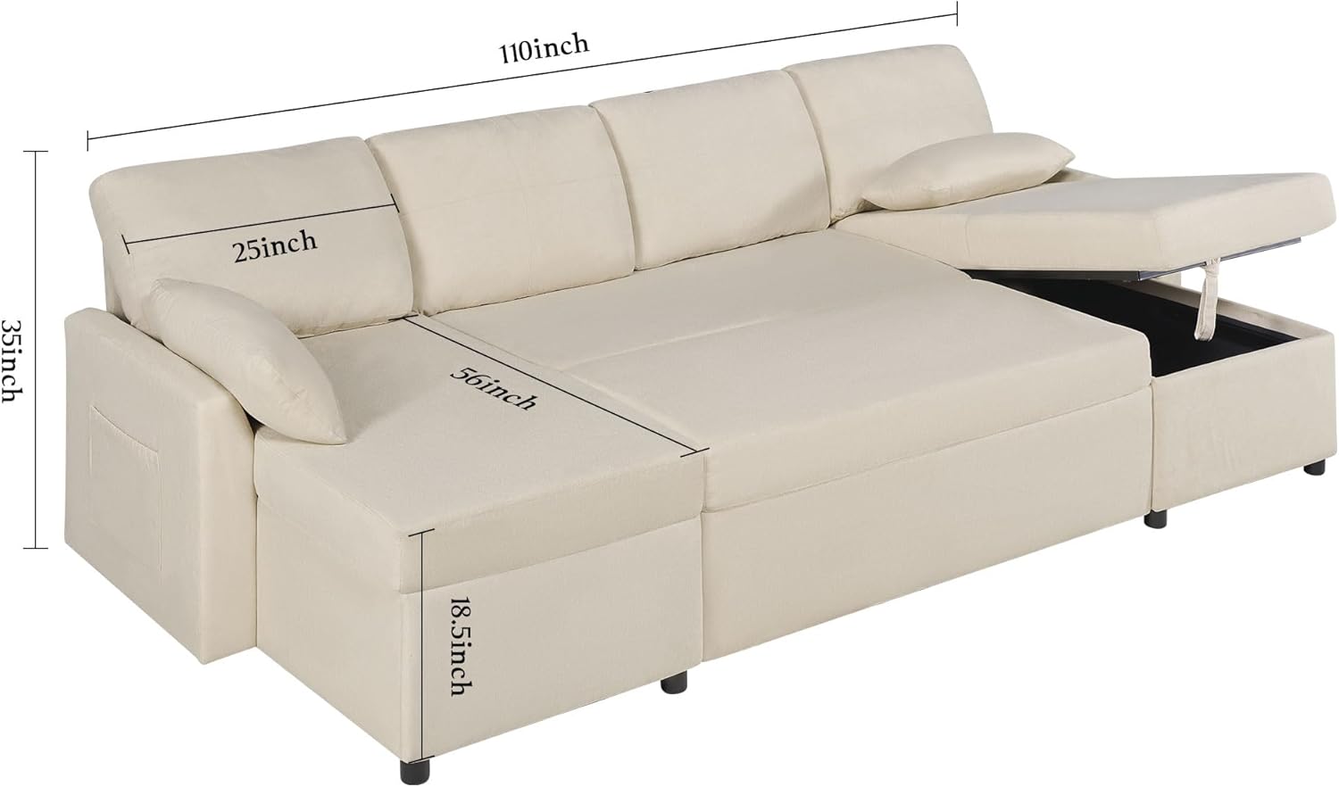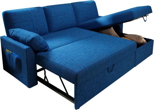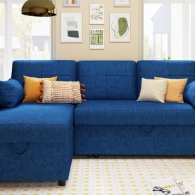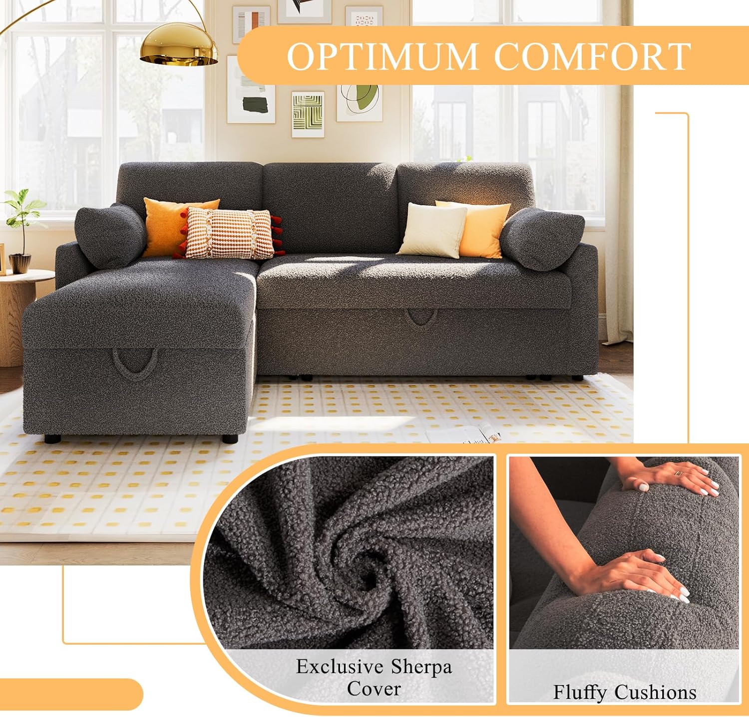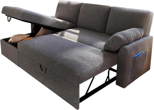 VanAcc Sofa Bed, Sleeper Sofa with Storage Chaise 2 in 1 Pull Out Couch Living Room