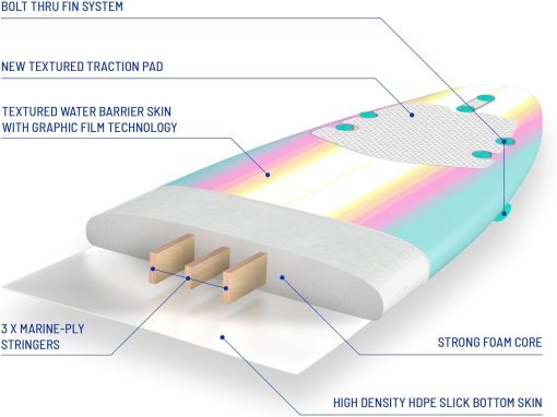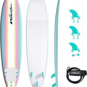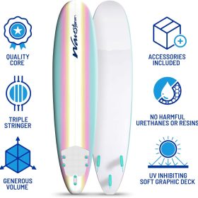 Wavestorm 8ft Classic Surfboard // Foam Wax Free Soft Top Longboard for Adults and Kids of All Levels of Surfing