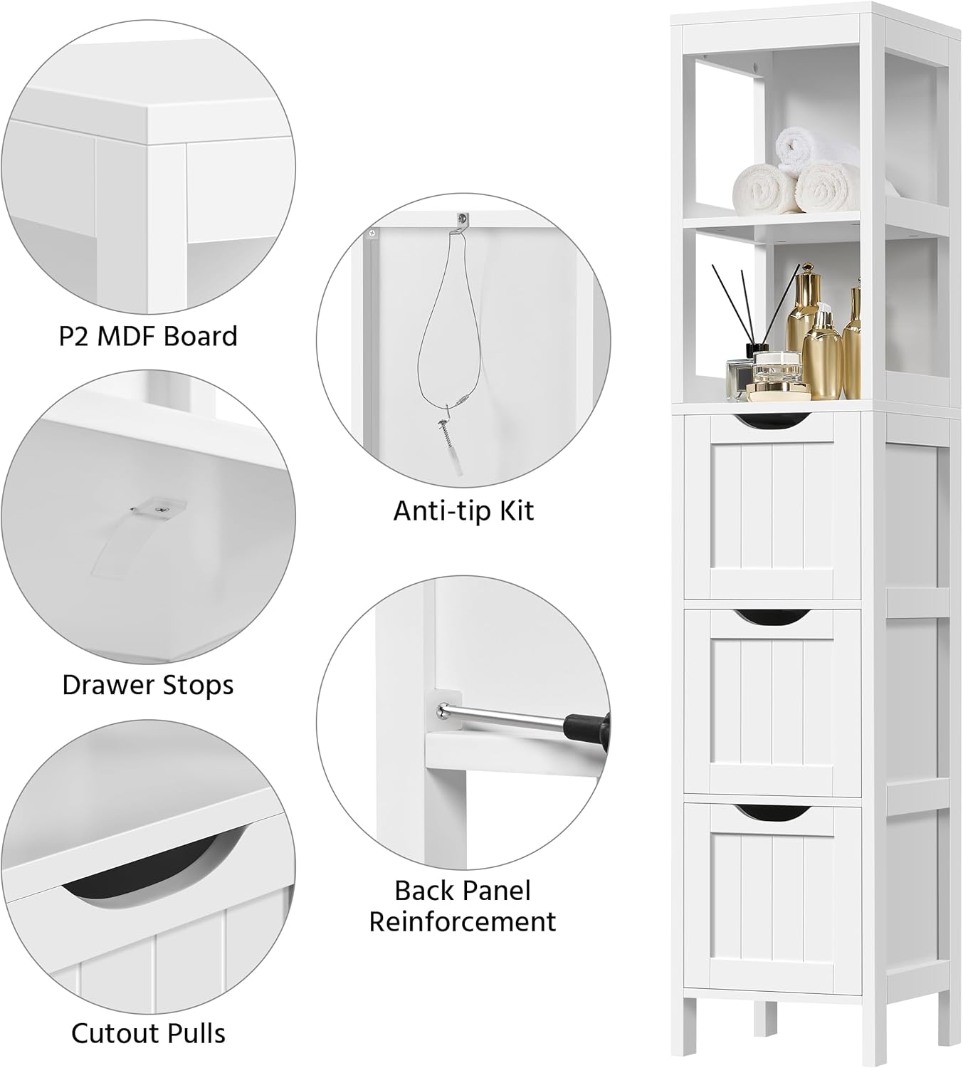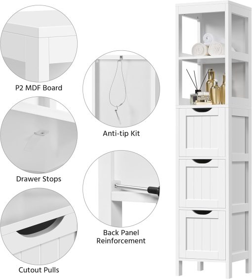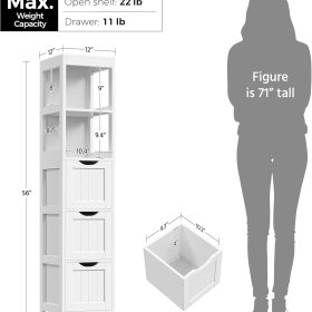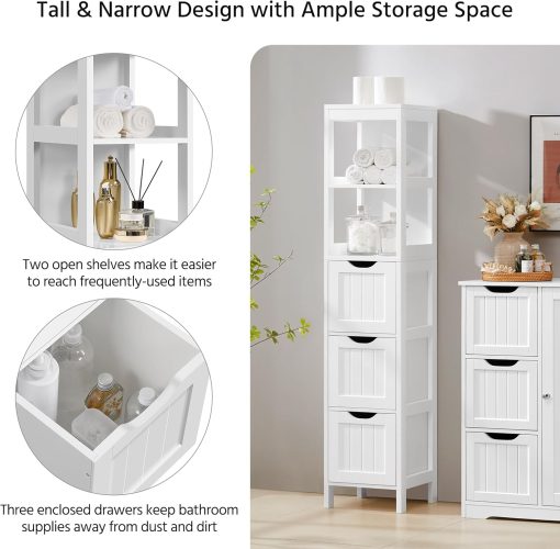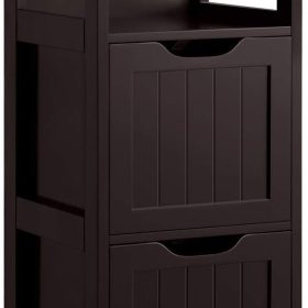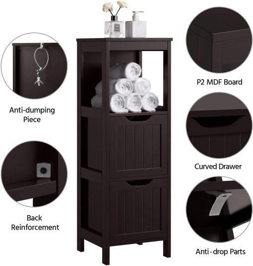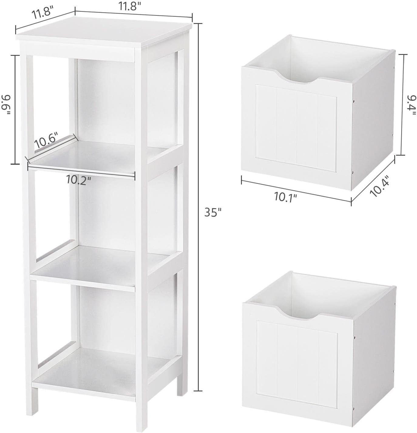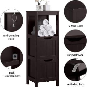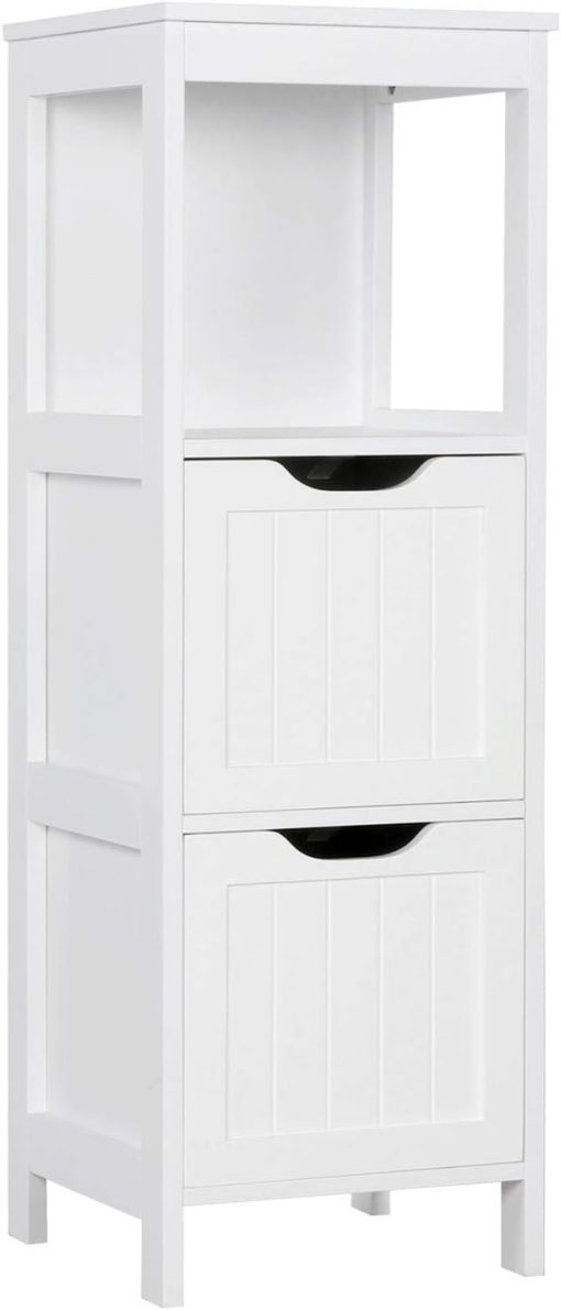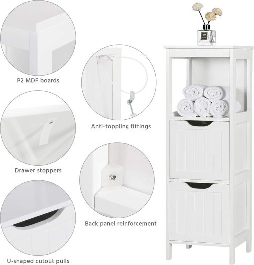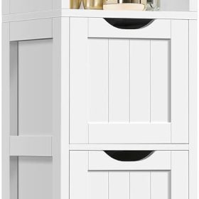Yaheetech Bathroom Floor Cabinet, Wooden Storage Cabinet with 2 Drawers, Multifunctional Side Organizer Rack Stand Table, White