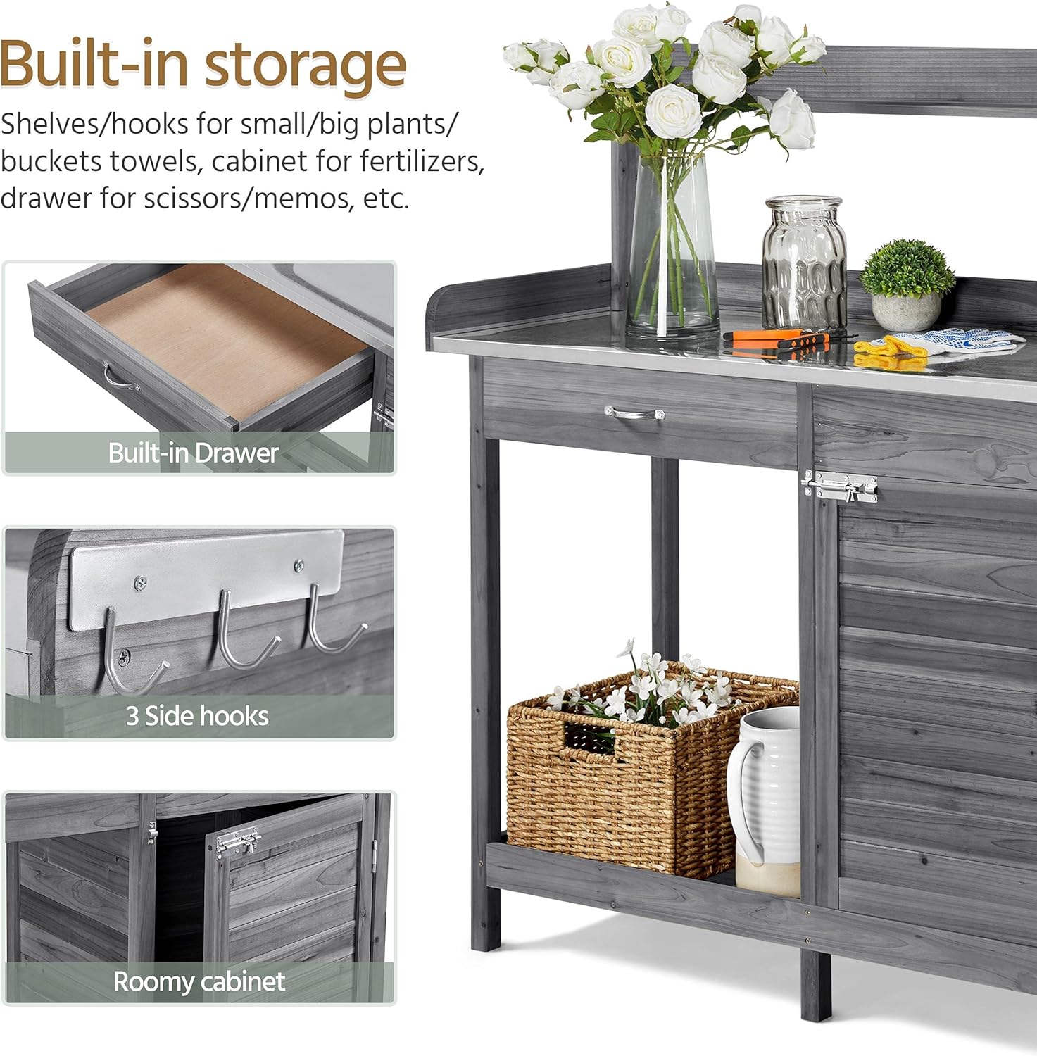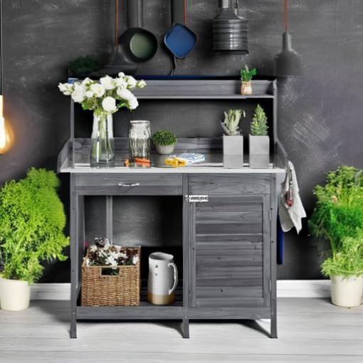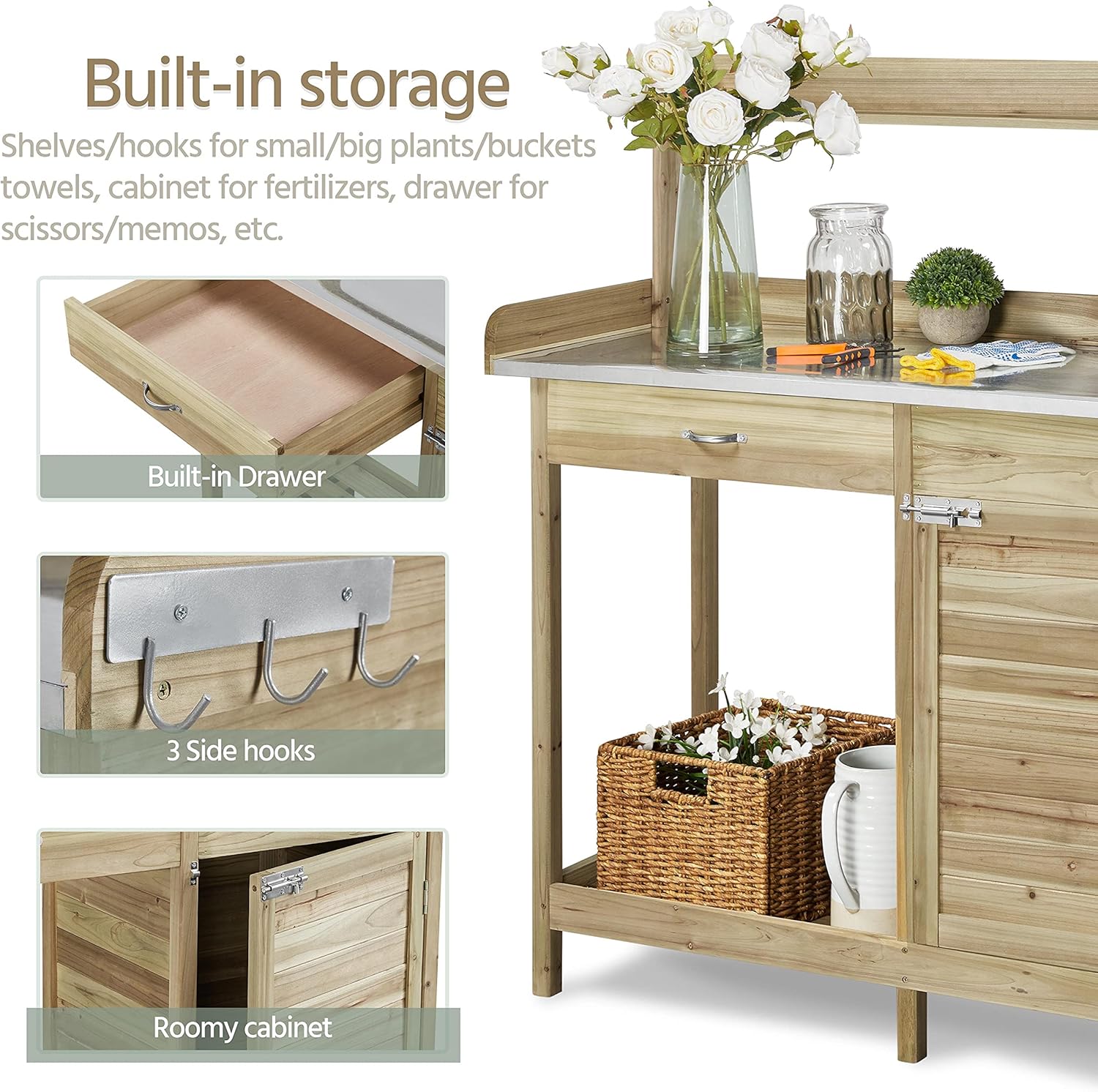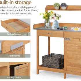 This 100% fir wood gardening console with an unadorned wood look can harmonize with your garden or backyard. The thoughtful functions make it a dedicated gardening assistant