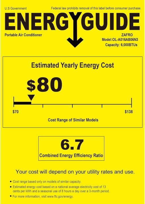 - 【Fasting Cooling�? ZAFRO 8,000 BTU portable air conditioner is suitable for rooms up to 350 sq.ft. Help you get a cool room temp in the sweltering summer.