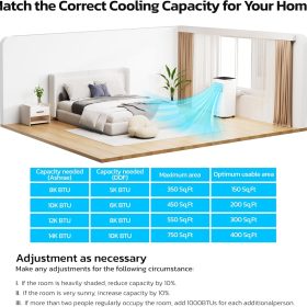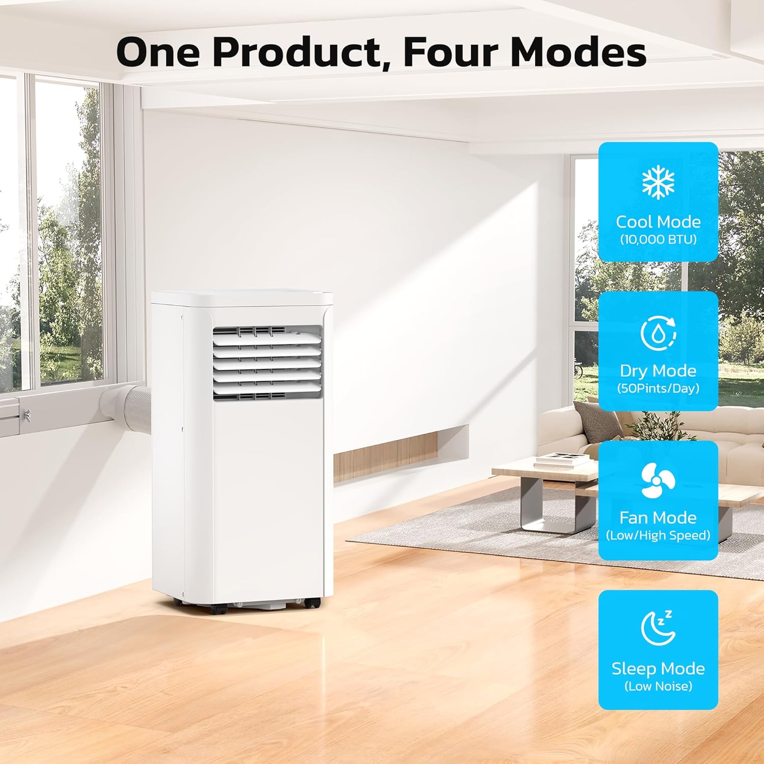 - �? Modes & Low Noise�? Our air conditioner combines 4 modes: Cool, Dehumidifier, Fan, Sleep and equipped with upgraded generation of high-efficiency compressor, which achieves low noise level to ensure no interference in night.